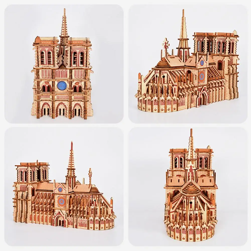 3D Wooden Puzzles Notr e Dame Cathedral 3D Puzzle DIY Puzzles Woodcraft Assembly Kit Education Toys For Kids Building Toys Gift