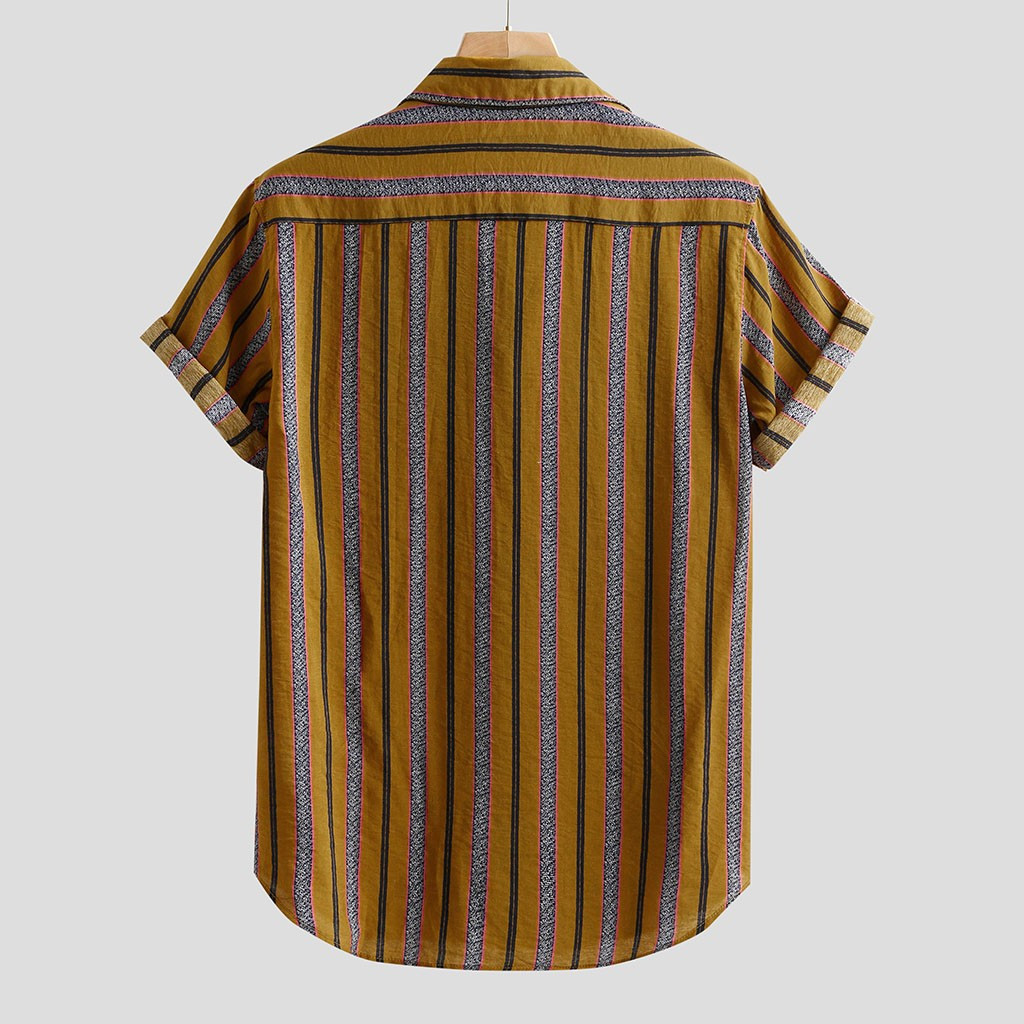 Мужская разноцветная полосатая летняя Свободная рубашка с коротким рукавом и пуговицами на каждый день