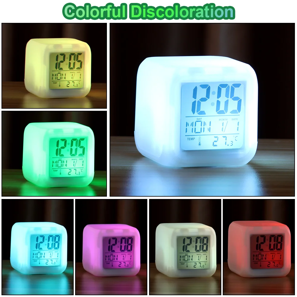Многофункциональный портативный Будильник 7 цветов большой светодиодный цифровой светящийся домашний декор домашний будильник для спальни термометр