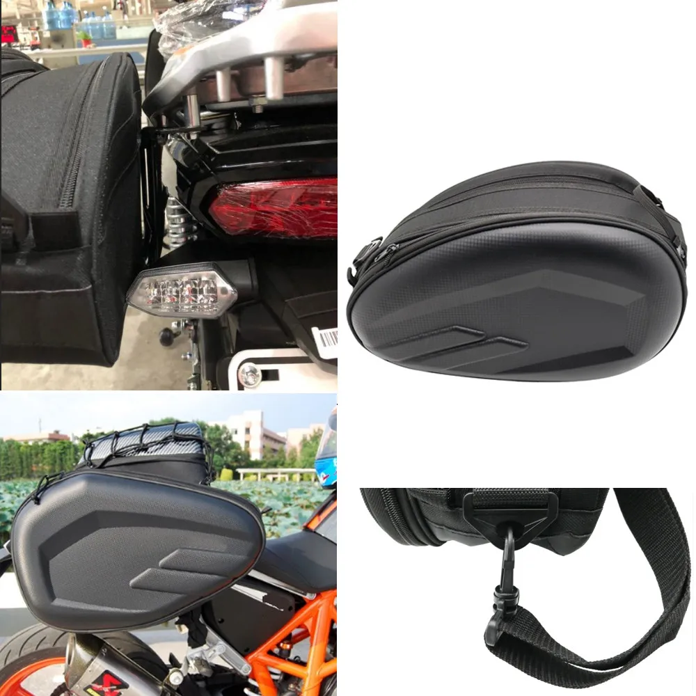 Большая емкость: сумка большой емкости, и она имеет 4 кольца или полосы, которые могут быть связаны с велосипедными стойками, или на коробке из алюминиевого сплава мотоцикла и так далее.