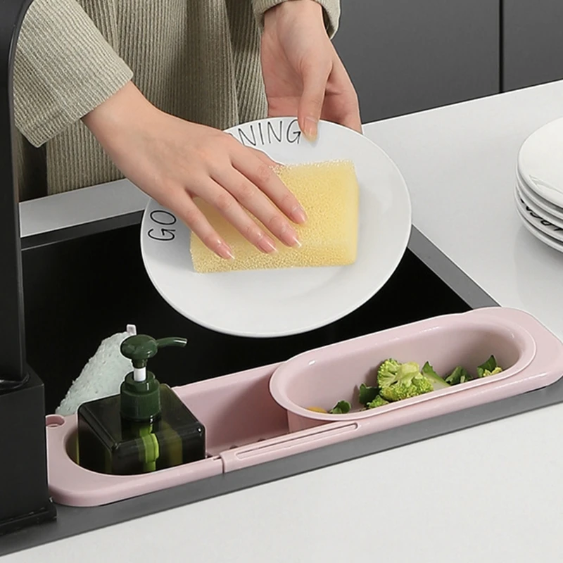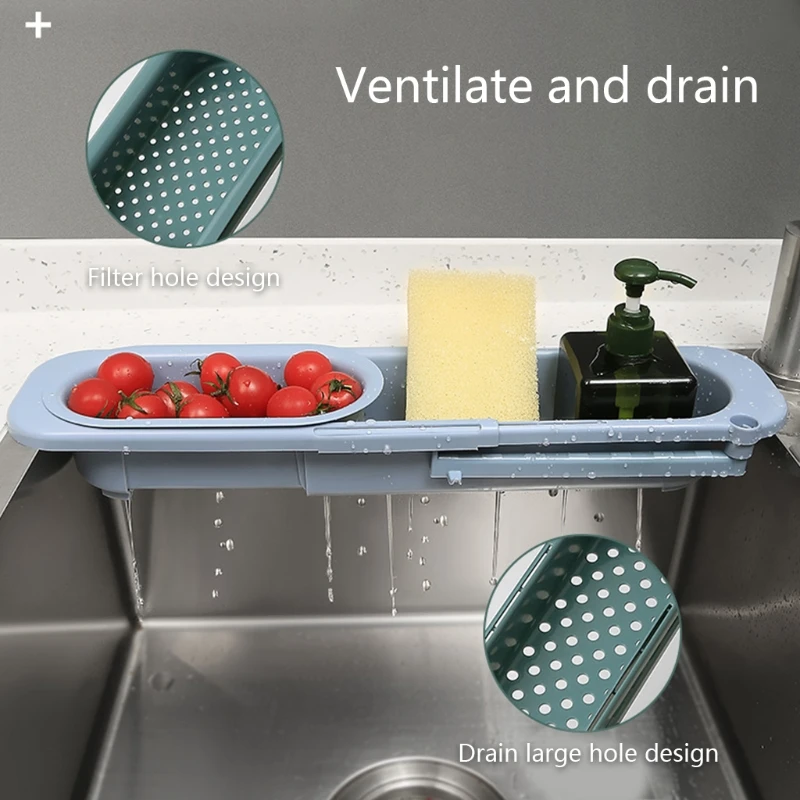 Сильная несущая способность: расширяемая корзина для слива для хранения, изготовленная из пластикового материала, имеет хорошую несущую способность, не деформируется и более стабильна и не трясется, что позволяет хранить больше продуктов сразу.