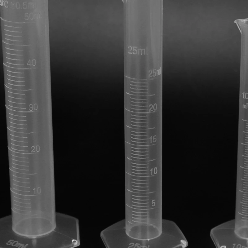 Емкость цилиндров: 10 мл, 25 мл, 50 мл, 100 мл, 250 мл. Легко чистить, можно использовать снова и снова пластиковый градуированный цилиндр для лабораторных испытаний.