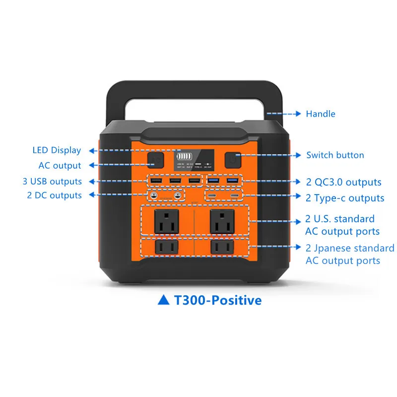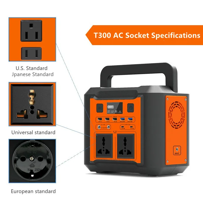 6. AC 300 Вт Выход: для ноутбуков, телевизоров, бытовых вентиляторов, мини-холодильников и т. д.