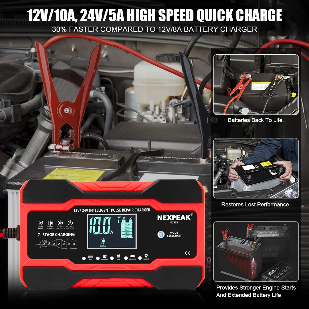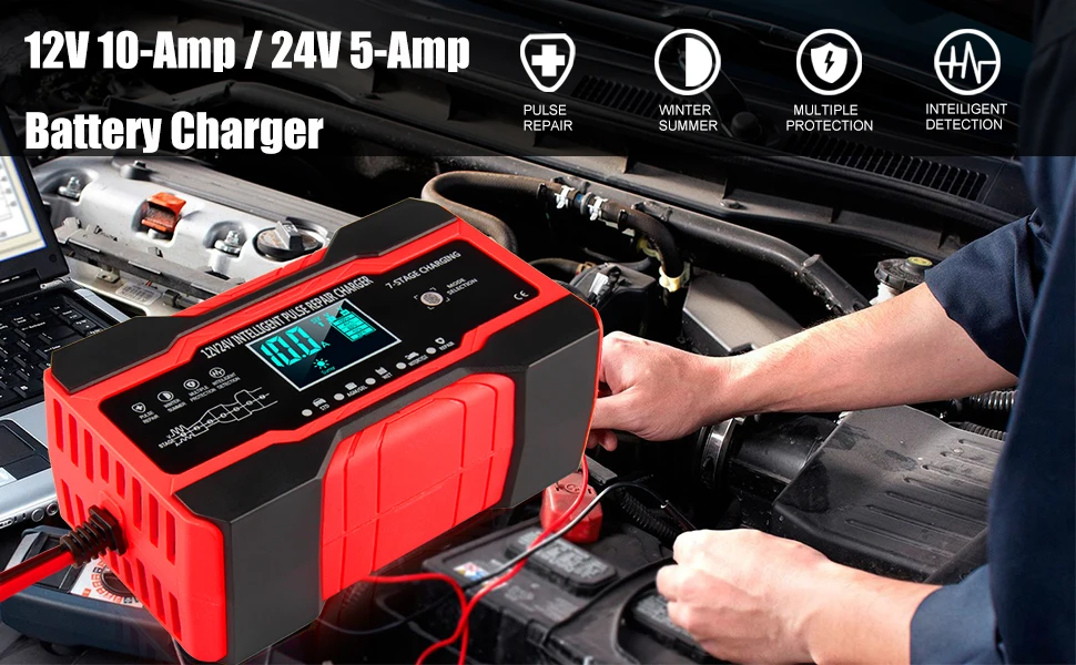 1. 【 10 AMP быстрая CHARGER】 12V 10 Amp и 24V 5-Amp 7-ступенчатая быстрое зарядное устройство, скорость зарядки гораздо быстрее, чем 8-Amp или 5-ампер автоматический зарядных устройств. Зарядка или отремонтируем продукцию все 12 вольт и 24 вольт свинцово-кислотные автомобильные, морские и батарей глубокого цикла, в том числе с клапанным регулированием гель лак для ногтей, объект соглашения о качестве предоставляемых услуг, затопленной в автомобилях, грузовых автомобилей, внедорожники, мотоциклы, газонокосилки, лодки морские и т. Д.