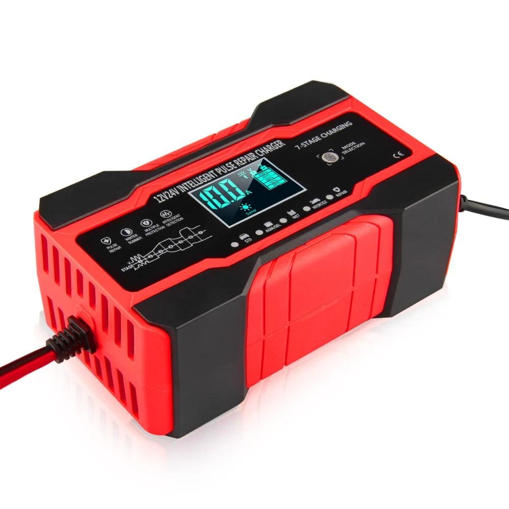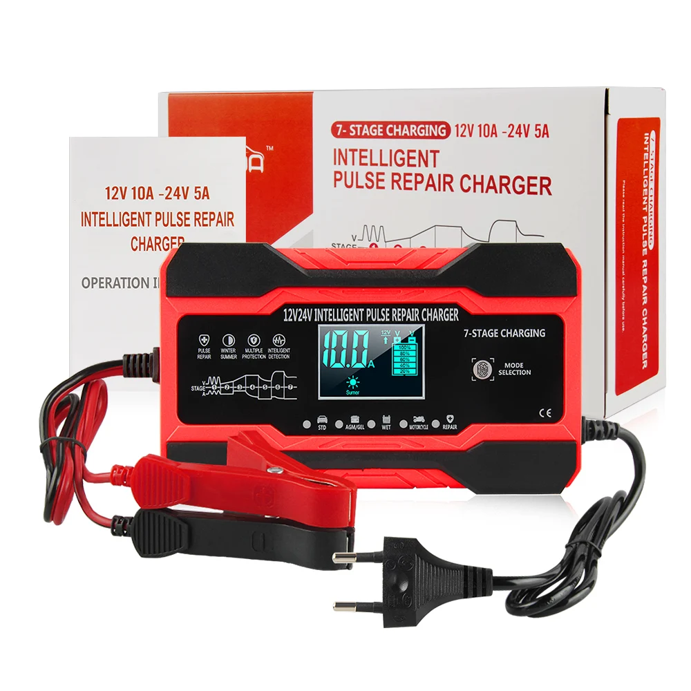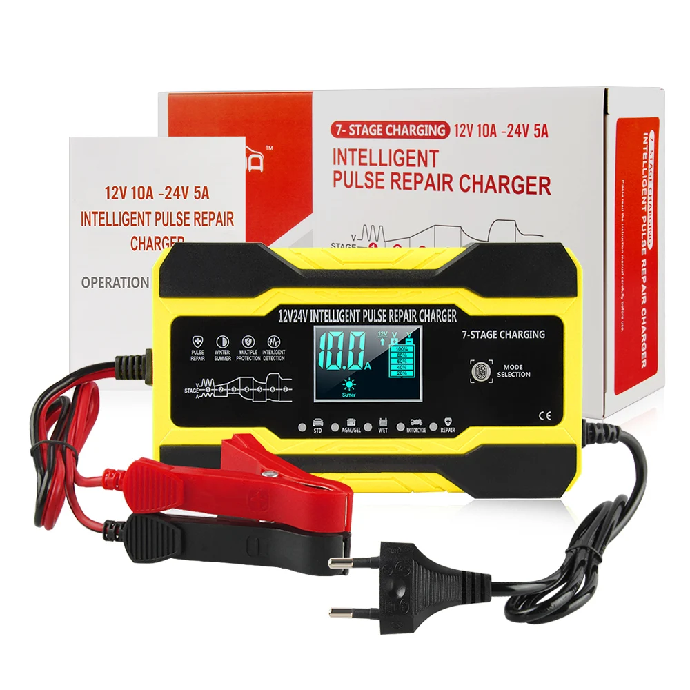 12 В 24 в 10 А полностью автоматическое автомобильное зарядное устройство для ремонта импульсов с зарядным устройством s влажное сухое свинцово-Кислотное зарядное устройство с цифровым ЖК-дисплеем