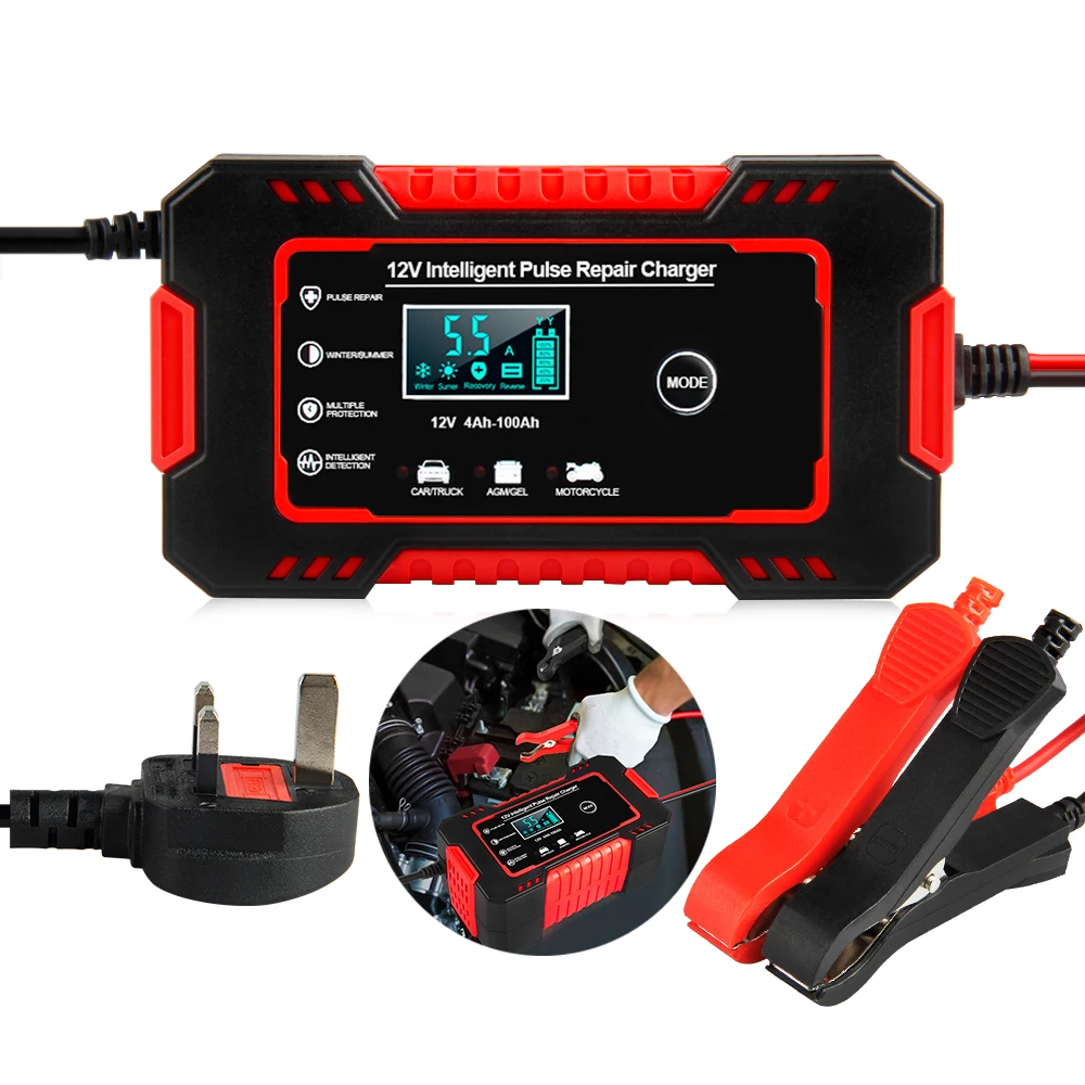 12V 6A полностью автоматические зарядные устройства для аккумуляторов, цифровой ЖК-дисплей, автомобильные зарядные устройства для аккумуляторов, зарядные устройства для ремонта, свинцово-кислотные