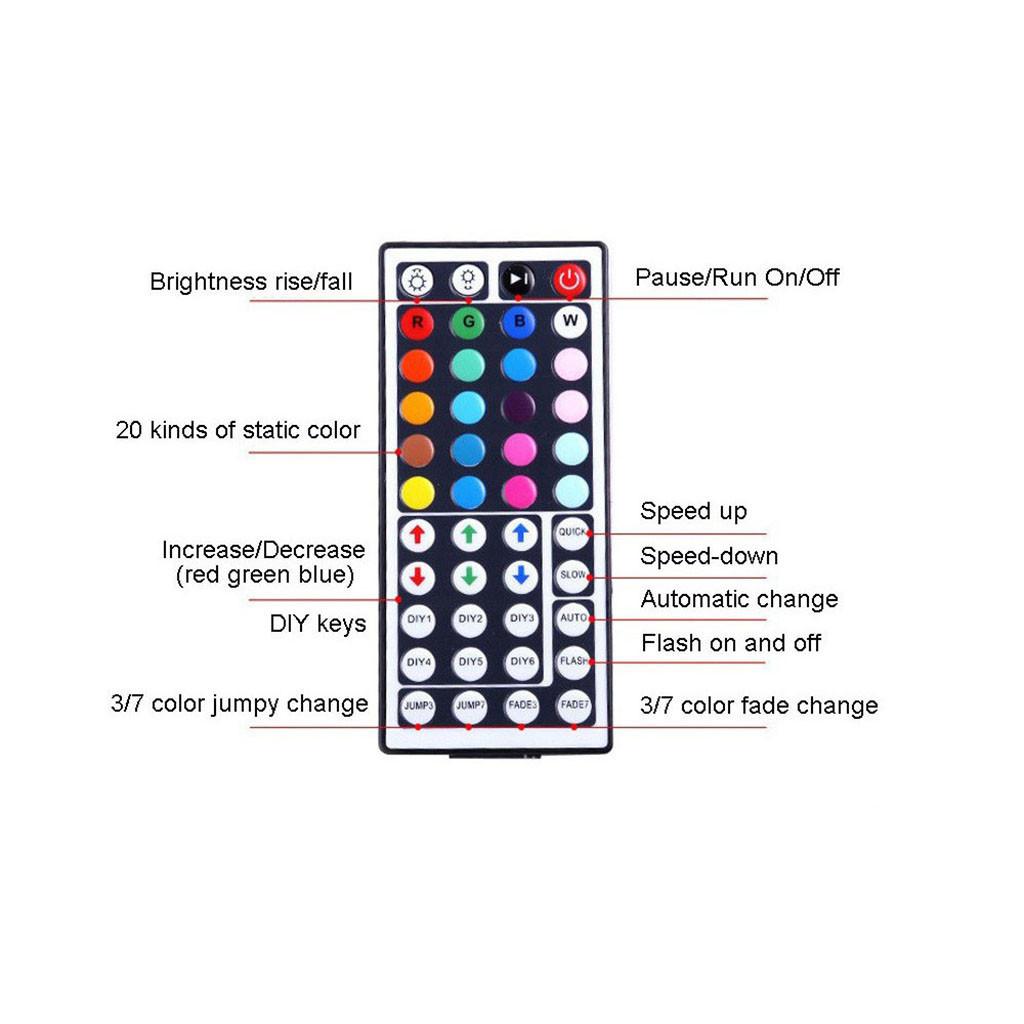 5-метровая Non-Водонепроницаемый гибкий Цвет RGB SMD3528 300 светодиодов светильник + Новый 44-клавишным пультом управления Управление 12V + 12V 2A Питание