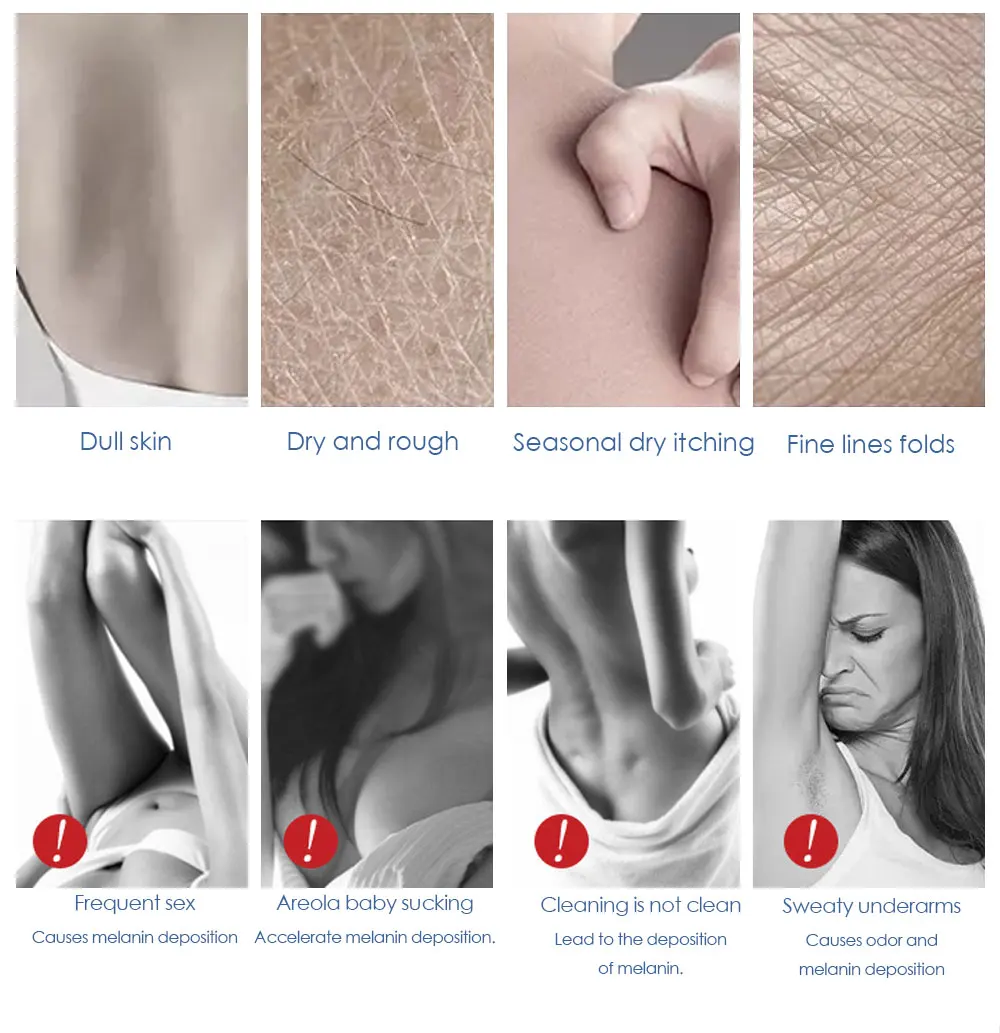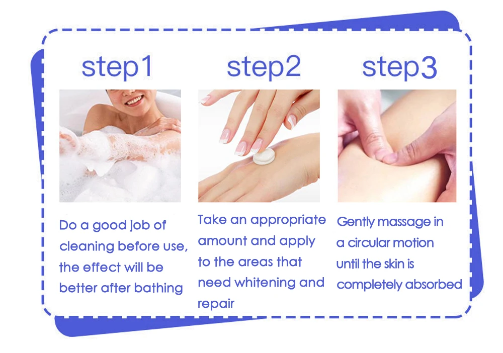 Питательные и безопасные ингредиенты заботятся о вашей коже и восстанавливают ее, подходят для осветления всех частей вашего тела, включая самые чувствительные и частные зоны. Долгосрочное использование будет иметь значительные эффекты.