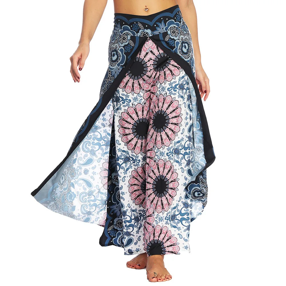 Дизайн: цветочный, Суперлегкий, быстросохнущий, богемный стиль, широкие, свободный крой, с высоким разрезом (S/M,L/XL), многослойный, эластичный пояс, без разрезов, широкие брюки M,L)