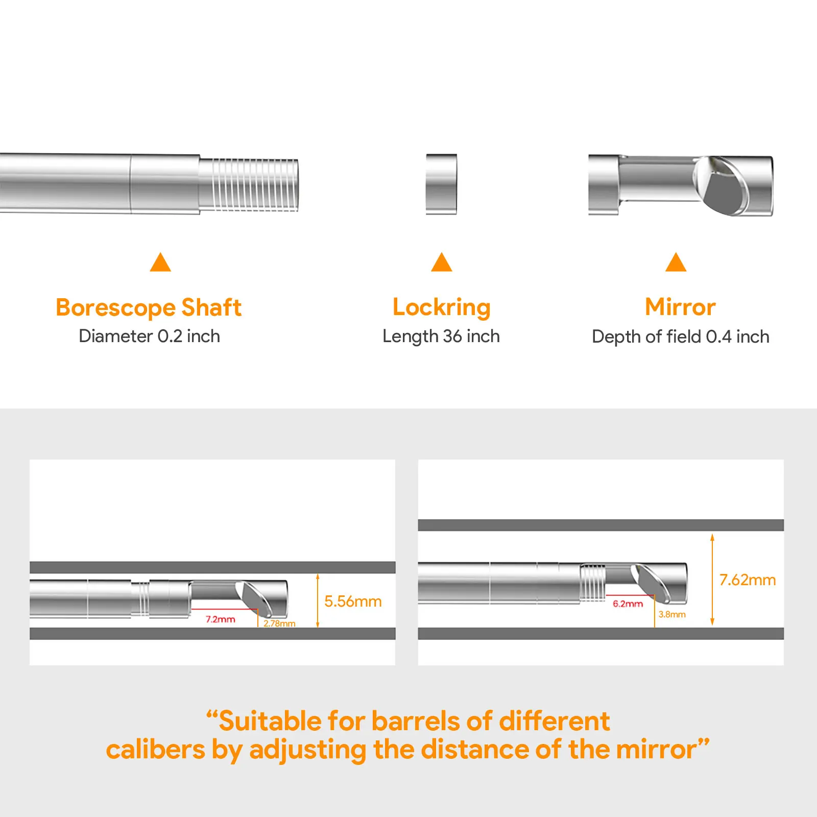 3 Зеркала бокового вида в комплекте-этот бороскоп с пистолетом включает в себя регулируемое, съемное, 90 ° боковое зеркало. Вы можете проверить стенку бочки или удалить ее, чтобы проверить точку стрельбы. Включает 3 зеркала в чехол, который вы потеряете или сломаете!