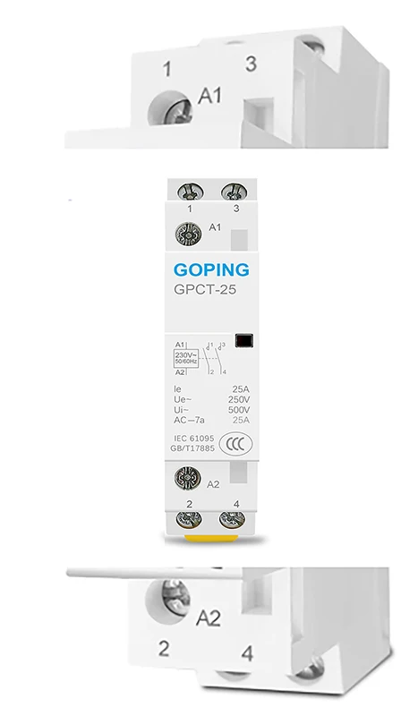 TOCT1Контактор переменного тока для дома в Основном предназначен для цепей переменного тока 50 Гц или 60 Гц с 230 В.Номинальное рабочее напряжение при AC-7a использовании, Номинальное рабочее напряжение до 230 В, Номинальный рабочий ток до 25 А, Номинальное рабочее напряжение в использовании AC-7b, номинальный ток до 10 А. Использование в разрыве мощности ниже 6kA цепи. Для расстояния подключения или прерывания цепи.