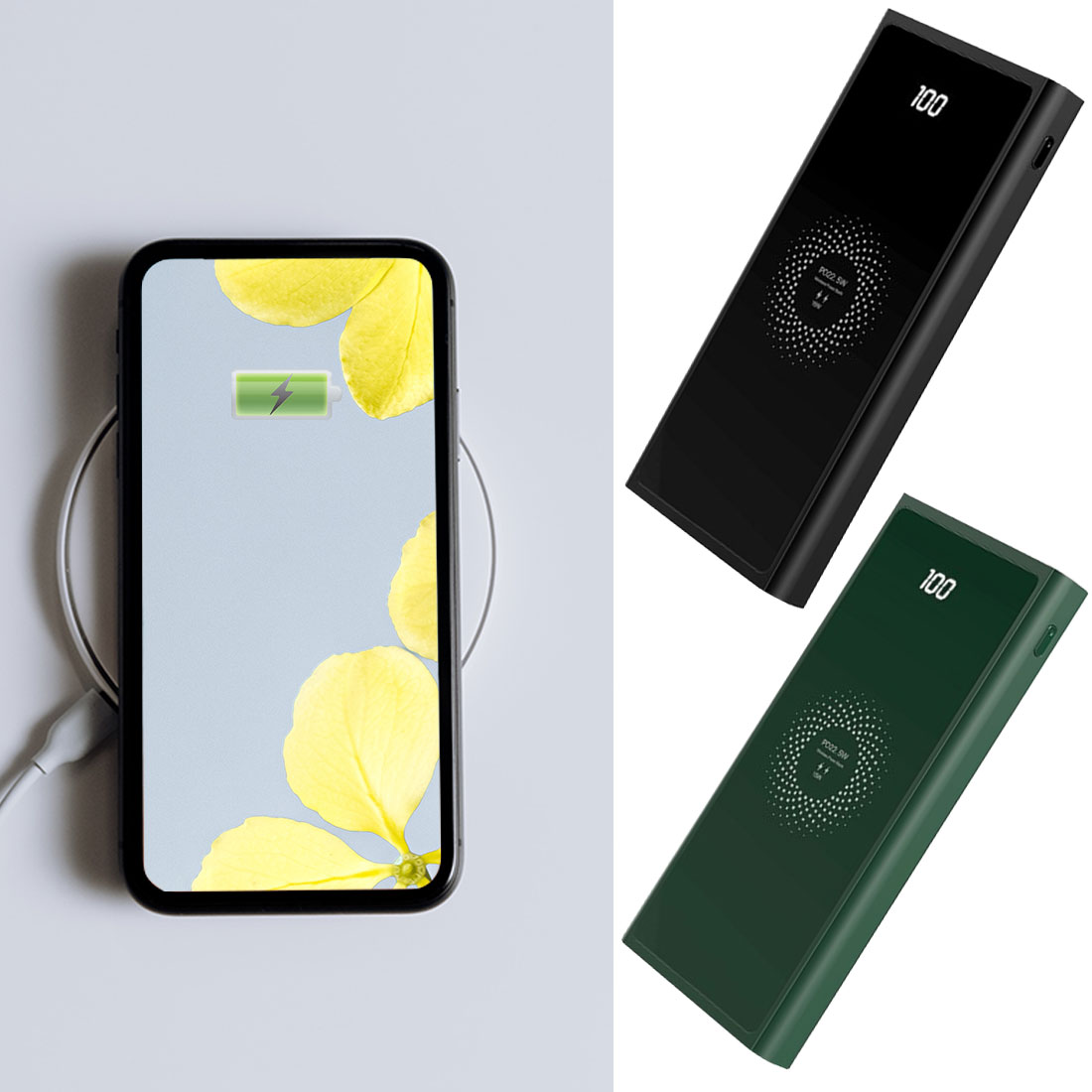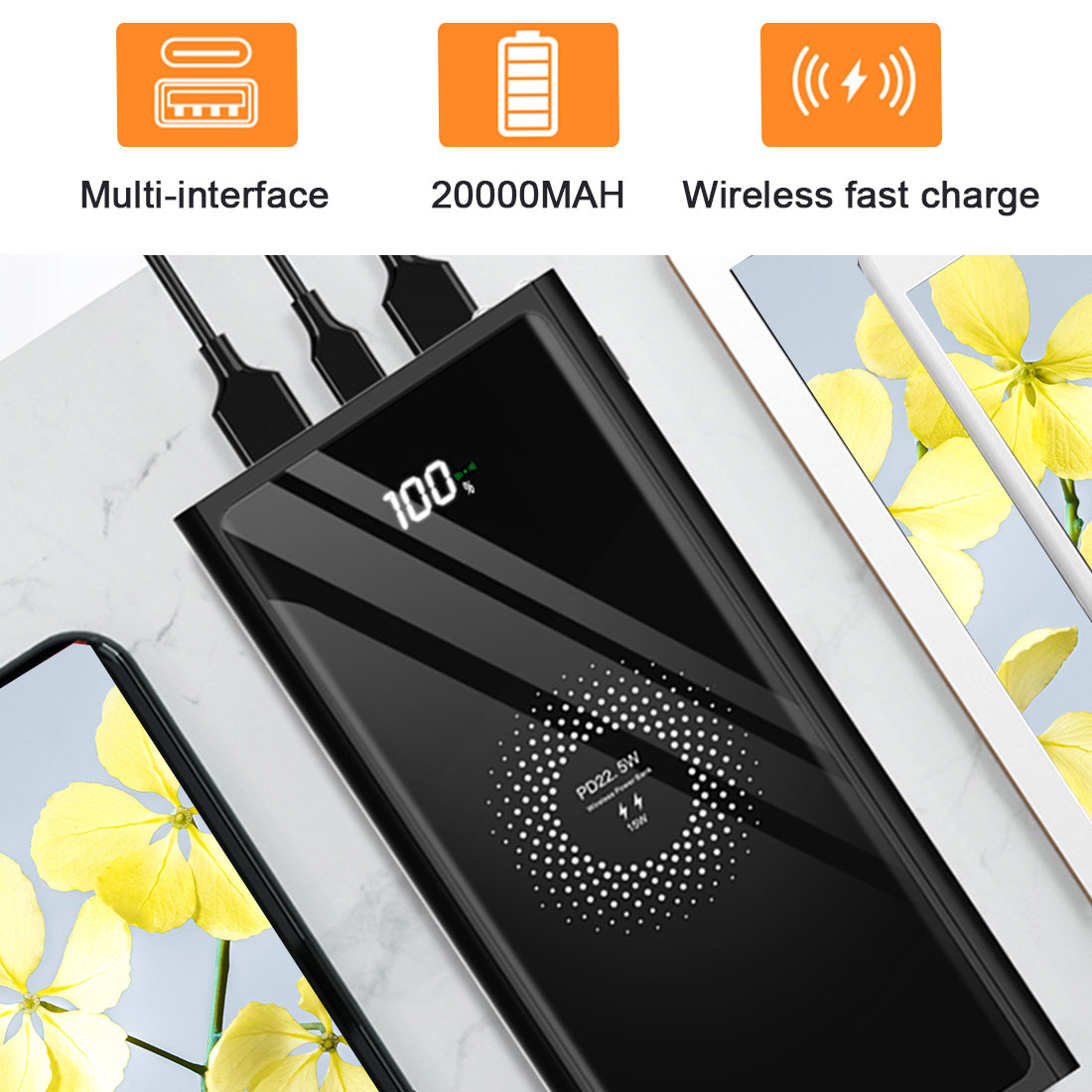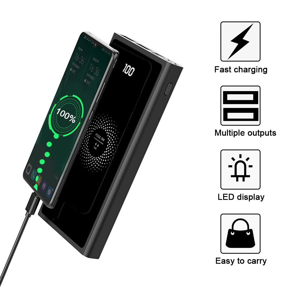 1. Extra portable, more convenient charging, when plugged into the wireless charger, you can charge the smartphone, or take it with you as a 20000 mAh portable battery pack.