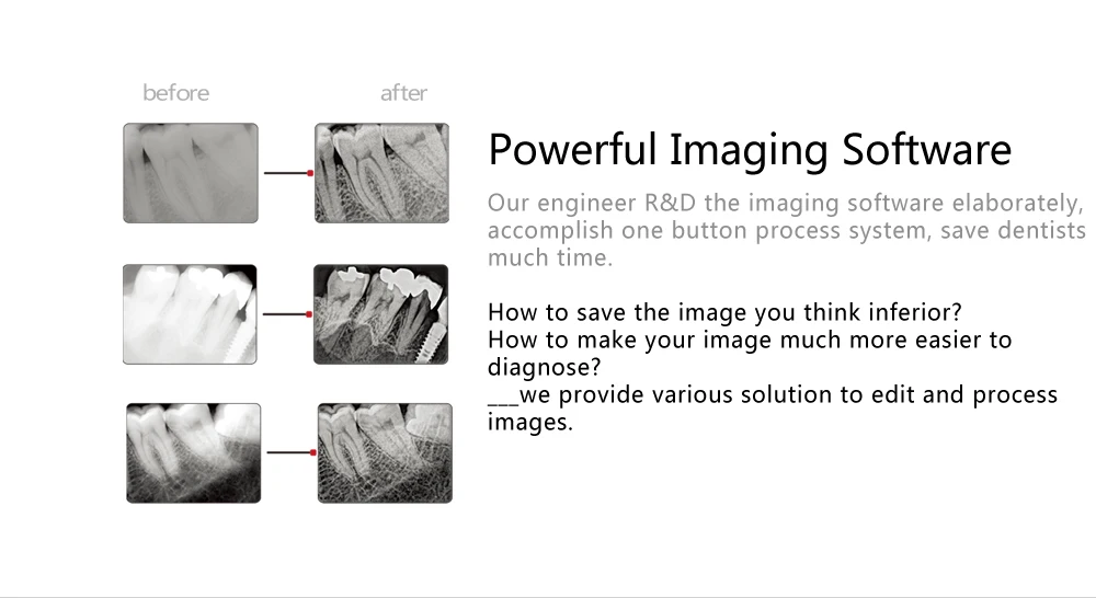 2. 22lp/mm: high identify ability of details and low x-ray dose, no matter to dentist or patient.