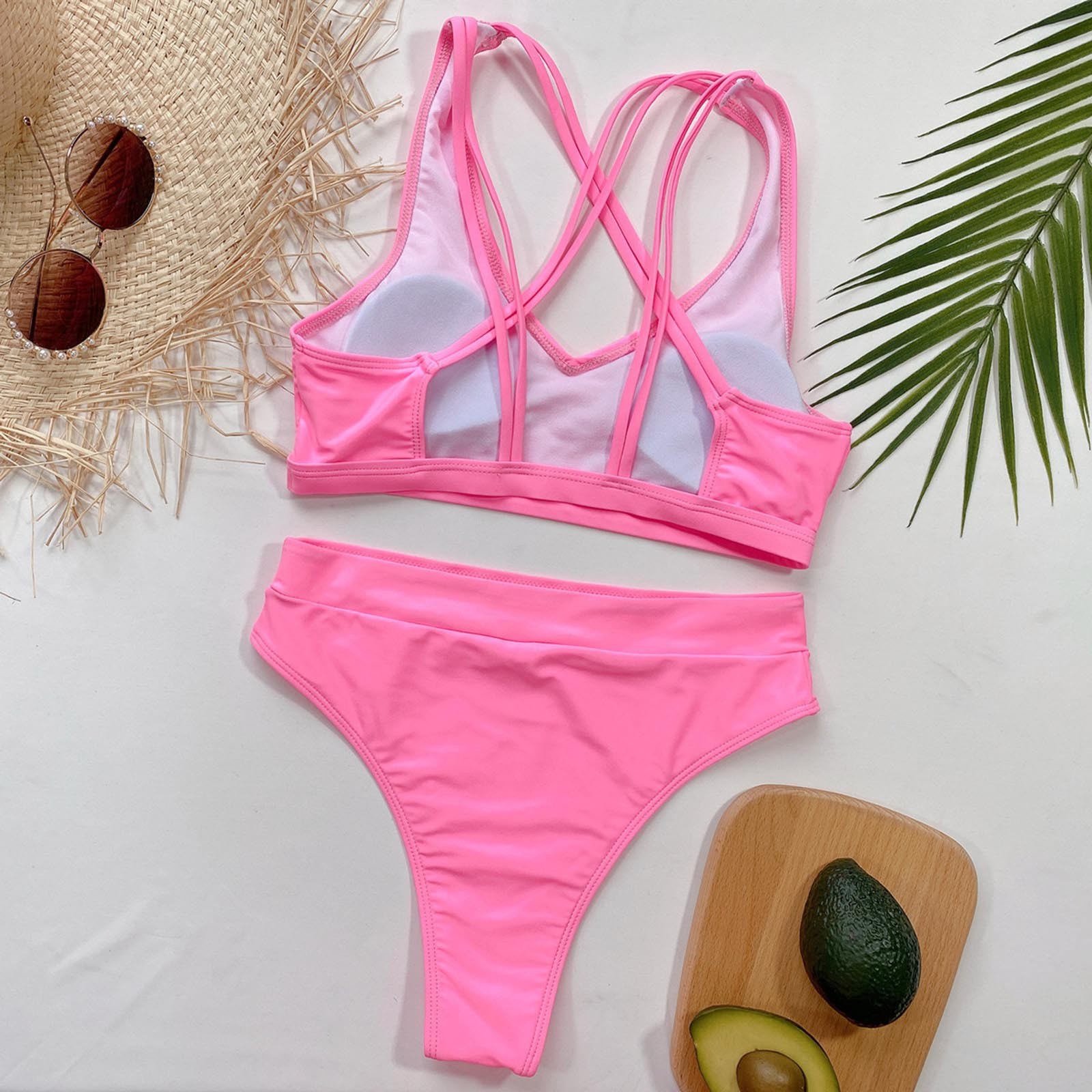 【Сексуальный бандажный Топ】Спереди перекрестный Завязывающийся узел сзади, съемная подкладка, djustable плечевой ремень, пуш-ап бикини;