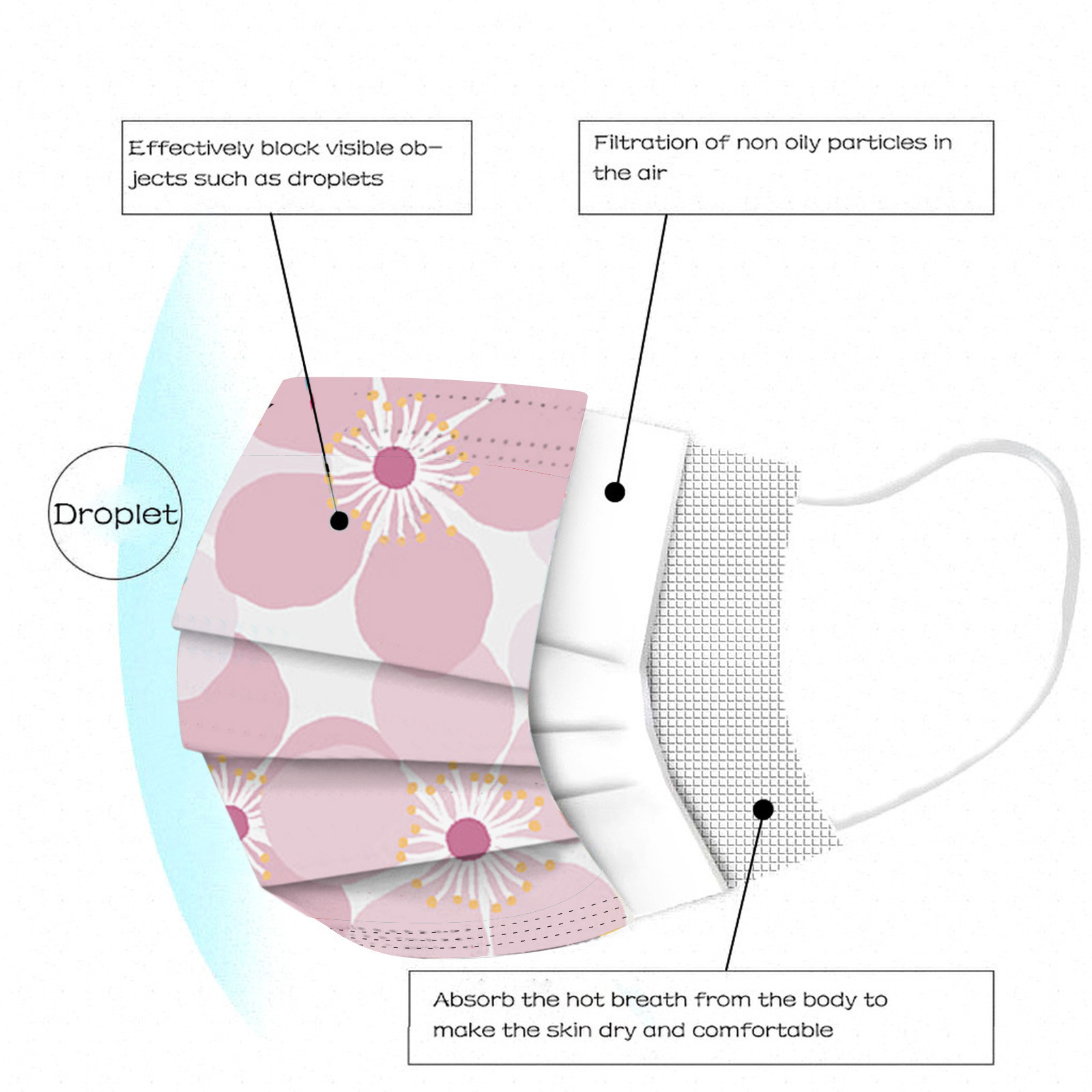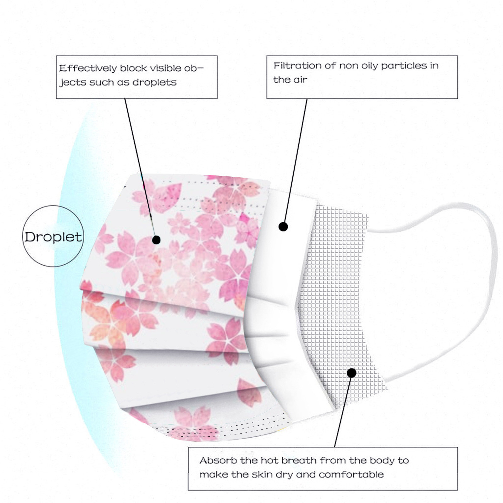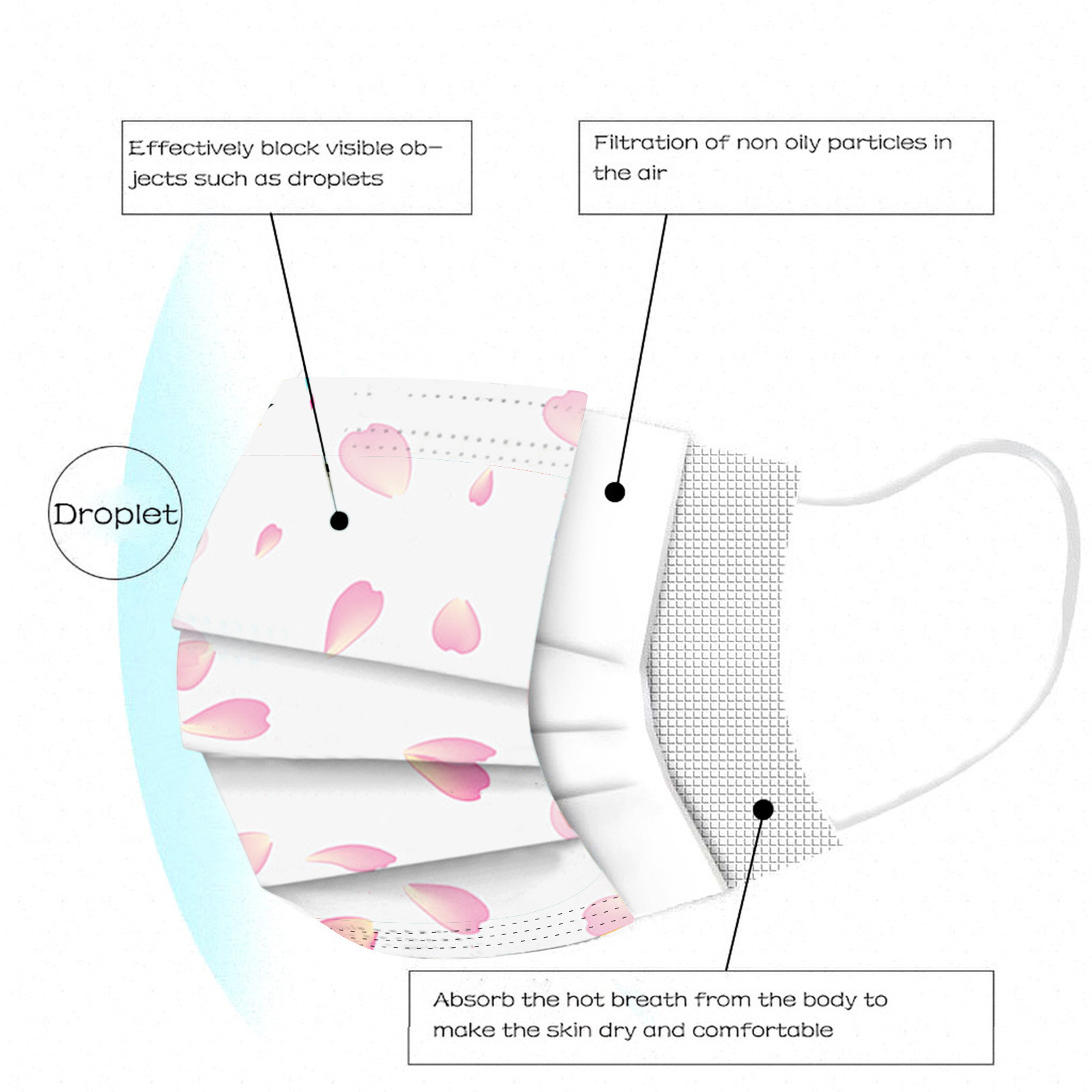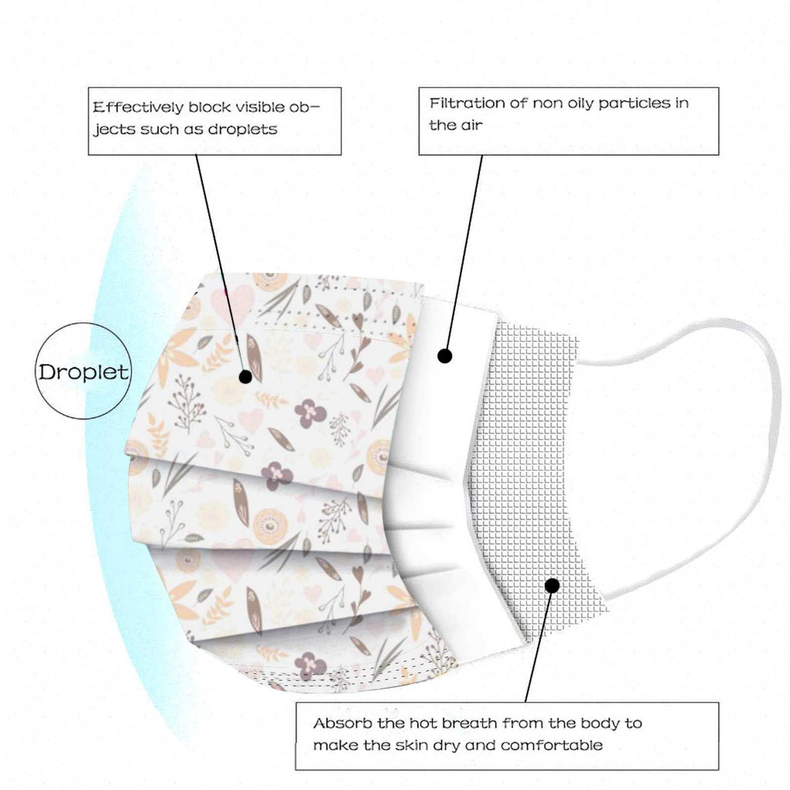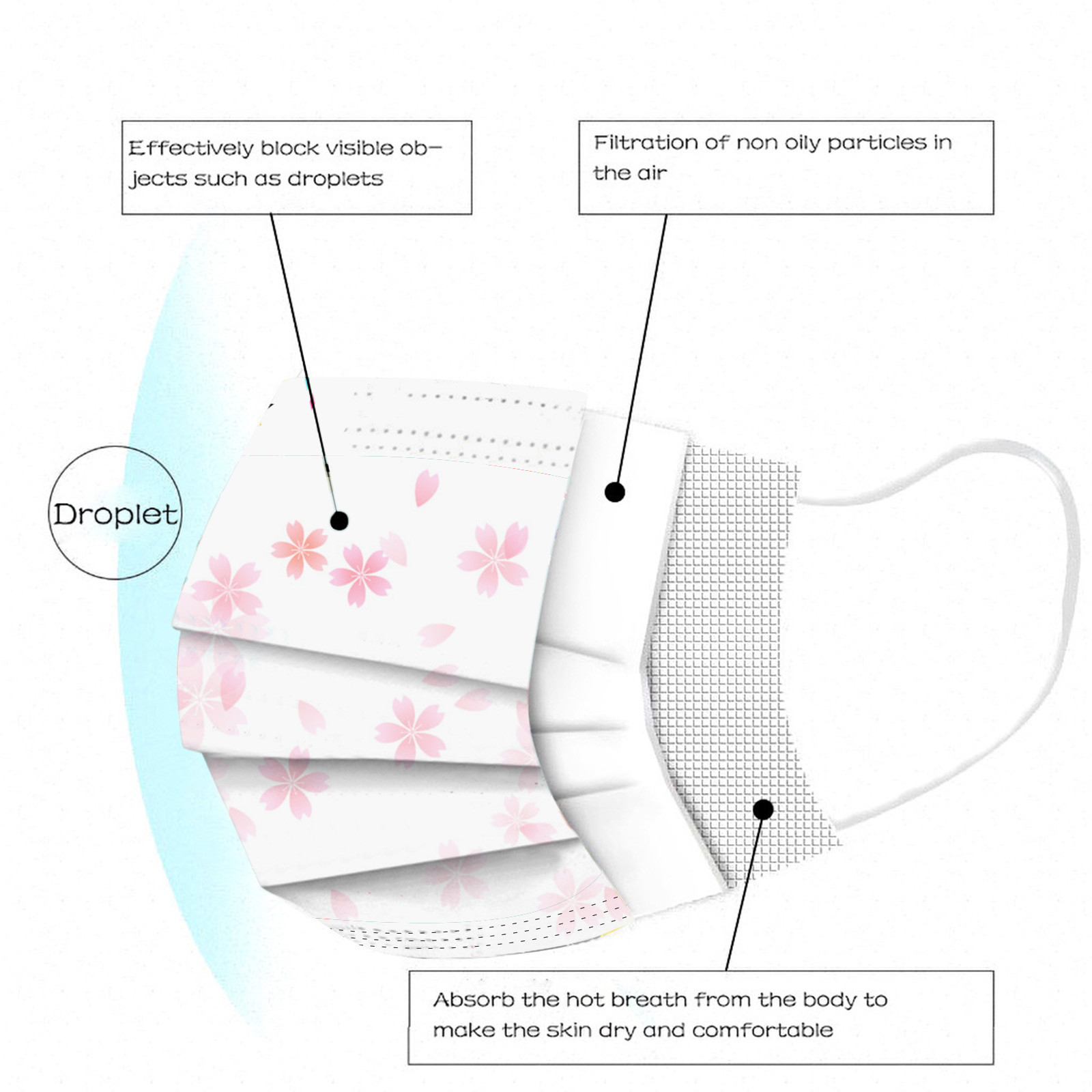 3 слоя одноразовые маски безопасен для здоровья и безопасный для вас, чтобы использовать. Дышащий материал и милые узоры, что делает его полезным и модным. Специальная конструкция обеспечивает некоторую защиту от пыли, автомобильных выхлопных газов, пыльцы и т. д. эластичная петля для ушей, легко носить и не давит на уши. Маникюрный салон или любые другие области, где может потребоваться защита