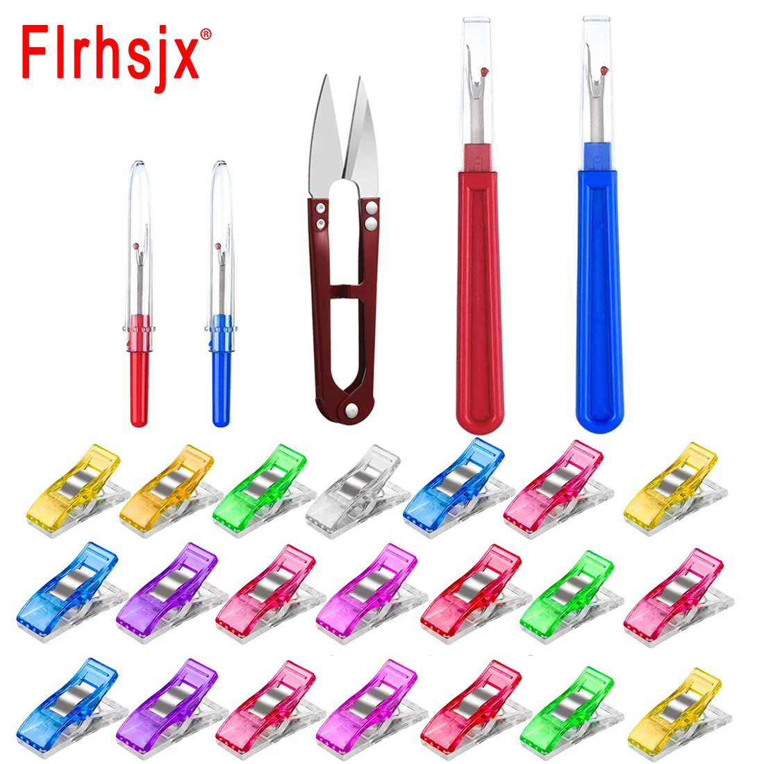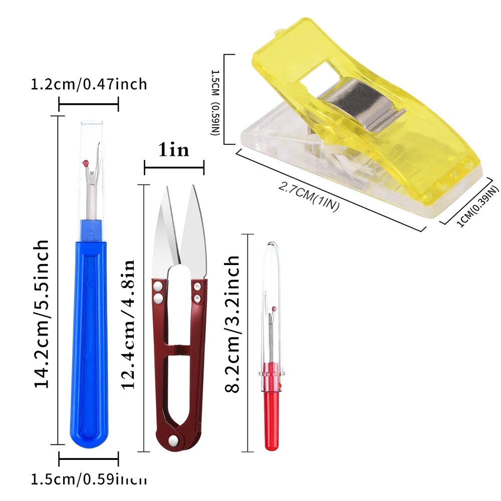 В набор швейных инструментов входят: 30 маленьких зажимов для швейных квилтинга, 2 больших Рыхлителя для швов (5,5 дюйма с прозрачной крышкой), 2 маленьких Рыхлителя для швов (3,5 дюйма с прозрачной крышкой), 1 шт. кусачки для ножниц отделка для шитья