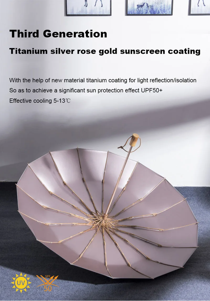 Роскошный 16 ребер супер большой зонт Анти-УФ Paraguas Солнечный зонтик дождевой ветрозащитный светильник Складные портативные зонты для женщин и девушек