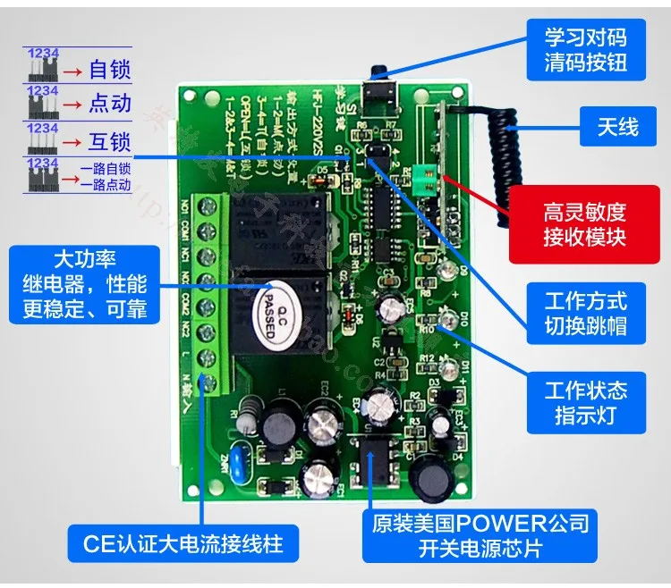 to configure:This link contains 1individual220VTwo way wireless remote control switch(With shell)、1High power3Key wireless remote control(Built in remote control battery,Battery model:23A/12V)、1A manual