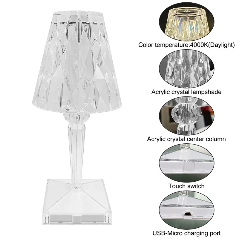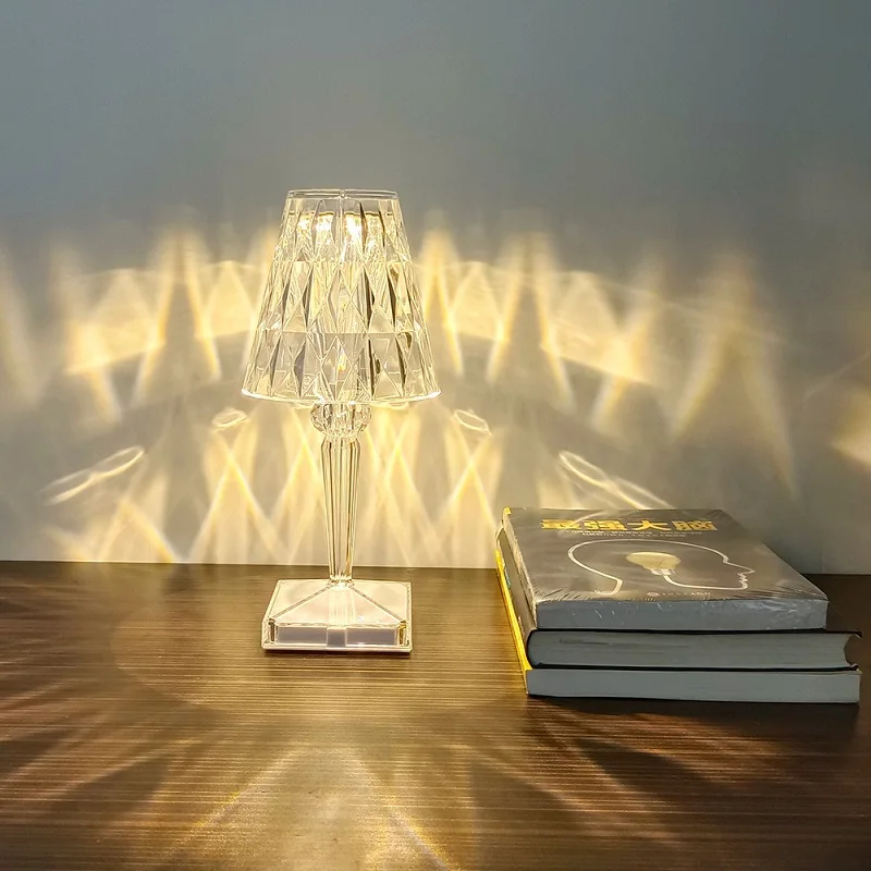 USB акриловый кристалл бриллиантовой отделкой лампа Перезаряжаемые спальня бар, декорация для дома и отеля светодиодный Ночной светильник подарок сенсорный выключатель
