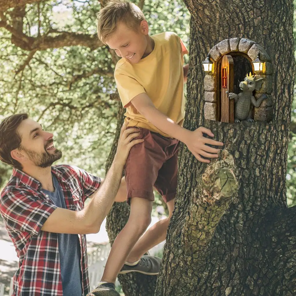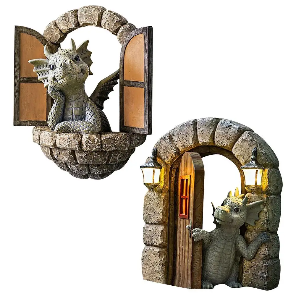 1. Сказочный декор: Эта скульптурная рельефная сцена Согреет ваше сердце-маленький дракон заглядывает с передней двери слишком мило.