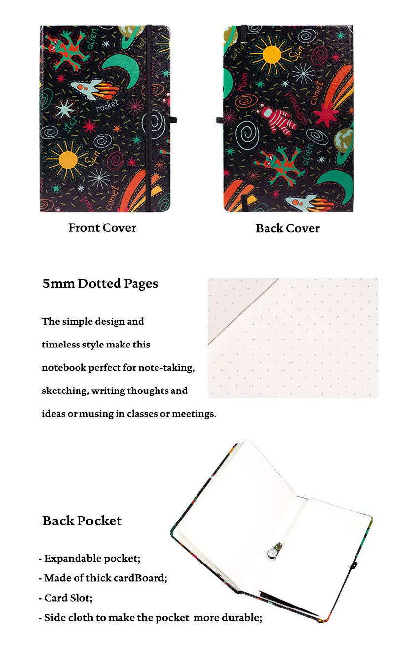 A5 блокнот с твердым лицом, с ремешком на спине, с карманом, дневник, матрица, пуля, блокнот, бумага в горошек, сетка, журнал, рисование, альбом для идей