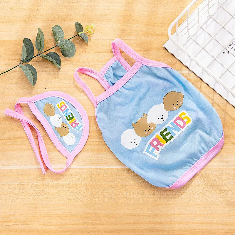 Жилет для собак и слюнявчик изготовлены из полиэстера, ткань удобная и skin-friendly.Cute в мультяшном стиле.