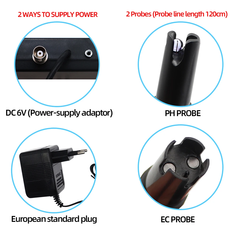 Широко используется для измерения pH / RH/температуры/проводимости EC / CF / TDS(PPM) раствора/воды.