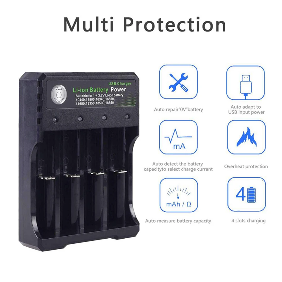 Безопасность во-первых: с интеллектуальными схемами, огнестойкими материалами, по всему миру Гарантия. Пожалуйста, подтвердите, что ваш аккумулятор подлинный/не поврежден/качество перед зарядкой.2 bay Универсальный Зарядное устройство заряжает одновременно почти все типы Перезаряжаемые батареи множества разных Технические характеристики: 10440 14500 16340 16650 18350 18500 18650 26650 Батарея и т. д.Защита от короткого замыкания, высокая термостойкость, устойчивость к коррозииППожалуйста, обратите внимание на положительные и отрицательные, поместите батарею в нужное место или она может гореть.