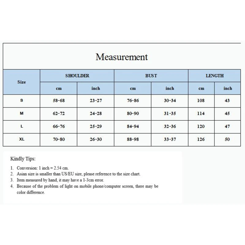 SPecifics: 1 см = 0,393 дюйма,1 дюйм = 2,54 см Размеры Длина Бюст Плечо