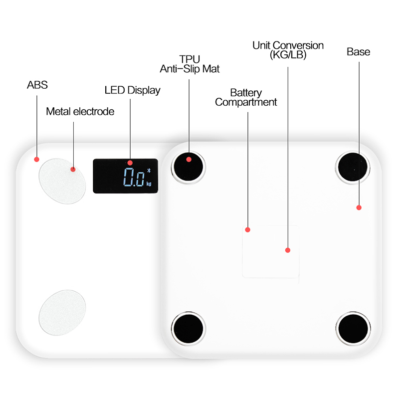 3. Весы для жира в сборе с противоскользящей матовой платформой, ударостойким стеклом и 4 прочными резиновыми ножками.