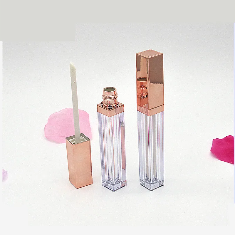4 мл Прозрачный квадратный блеск для губ трубки с розовой золотой крышкой кисти, жидкая бутылка для блеска для губ аппликатор многоразового использования трубка пустая 20 штук