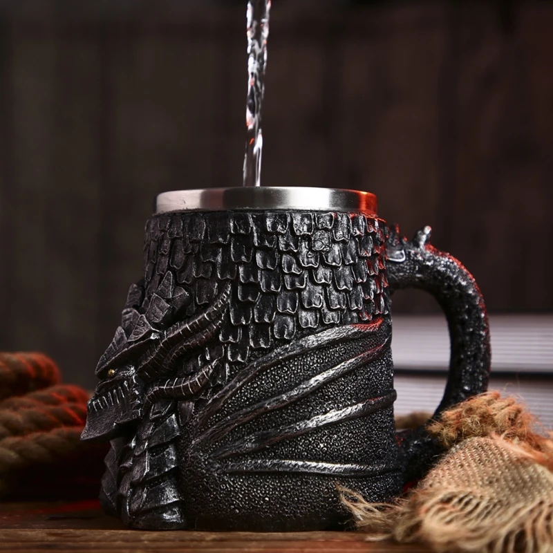 T21D 3D Retro Dragon Mug Beer Drink Cup 450ml Stainless Steel Double Layer Coffee Cups Novelty Gothic Gift Dragon Lovers