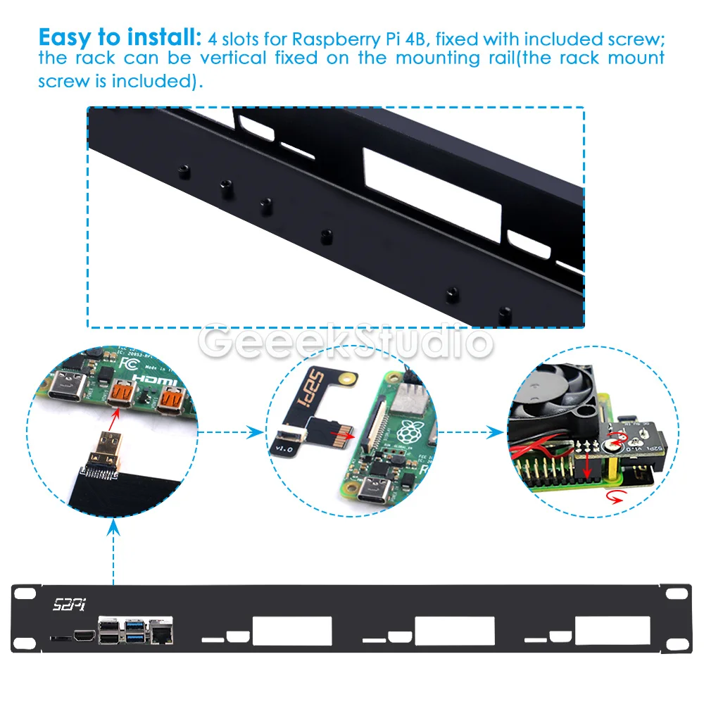 Этот 19 дюймовый rackmount специально разработан для дома Raspberry Pi 4 B платы, поддерживает до 4 единиц.