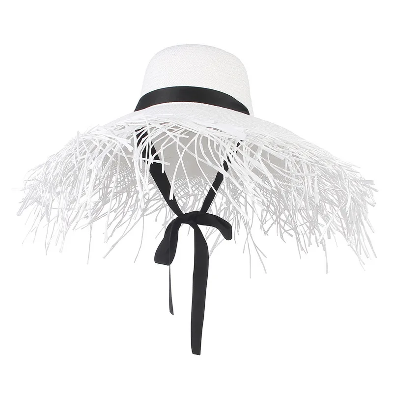 2021 женская Соломенная соломенная шляпа с широкими полями для девочек черного и белого цвета, Пляжная соломенная шляпа для отдыха