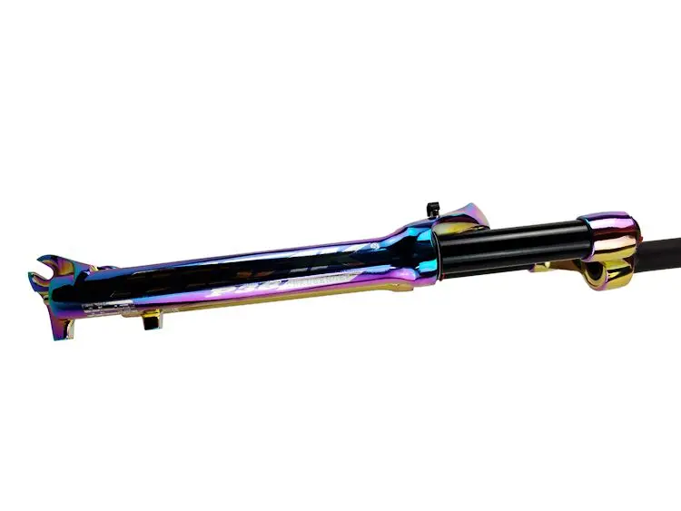 4. Длина подставки вилки 249 мм, внешний диаметр подставки 28,6, ход 120 мм (диаметр ходовой трубы 32 мм, эффективный ход 100 мм), пластина для быстрой разборки, открытый напильник 100 мм
