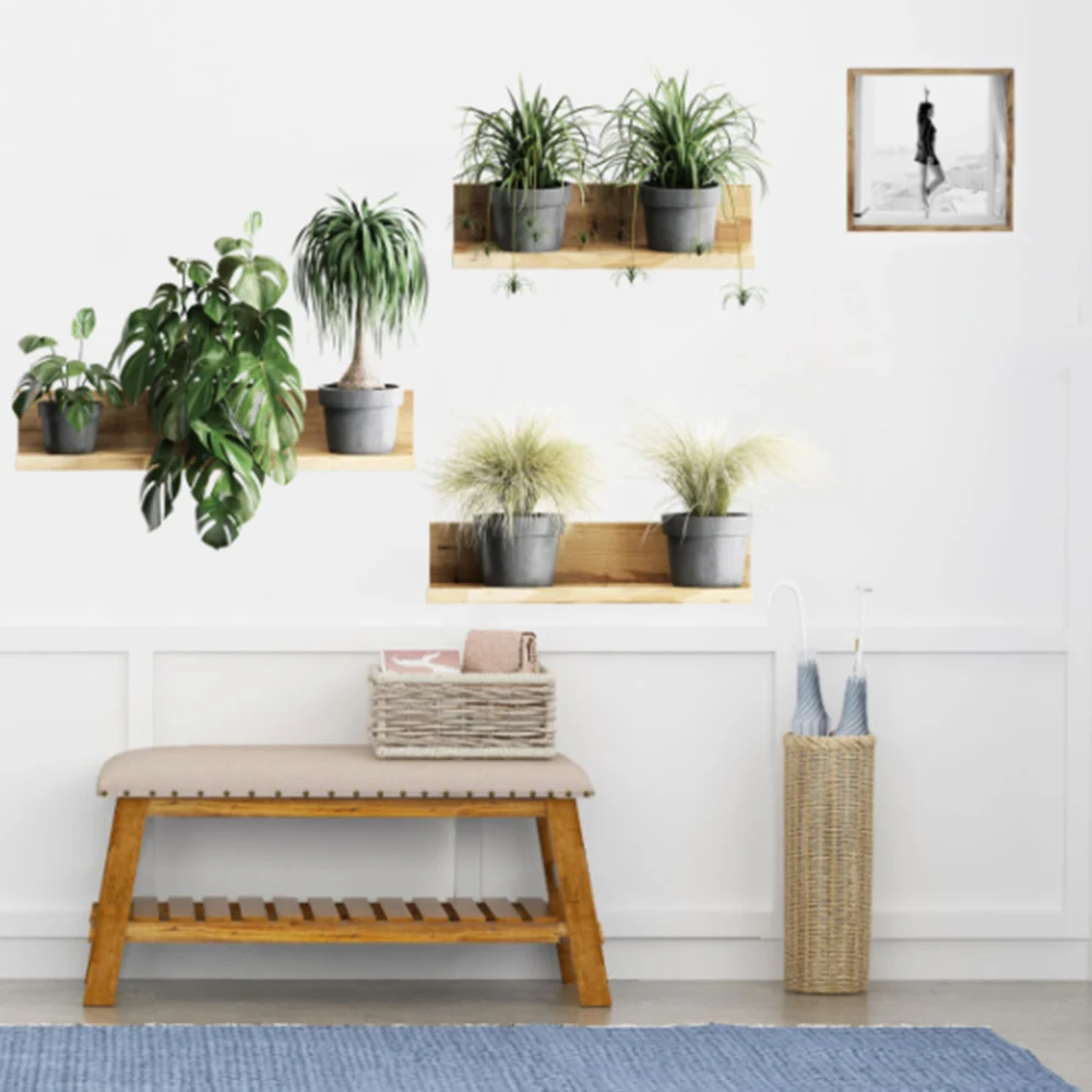 3D обои Зеленые растительные горшки настенные наклейки зеленые растения настенная полка домашний декор для гостиной спальни украшение художественная настенная бумага