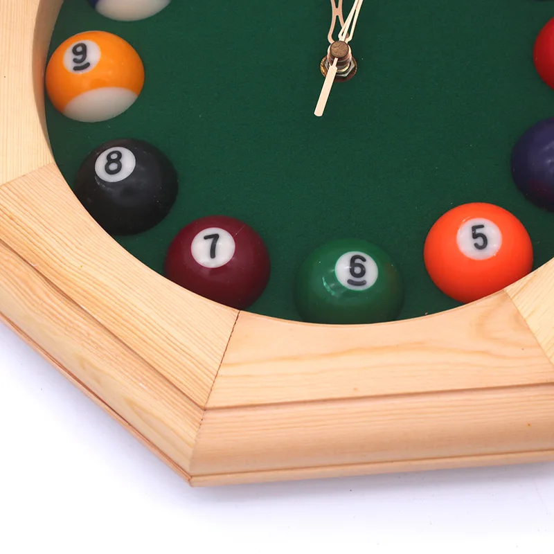 Горячая продажа Уникальный восьмиугольник дизайн натуральное дерево цвет Снукер и бильярдные часы для игра в Настольный бильярд и украшение дома