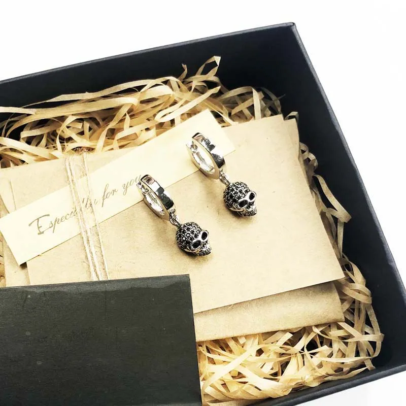 Висячие серьги-кольца с черепом и фианитом, подарок из стерлингового серебра 925 пробы, в европейском стиле, с каркасом, трендовые, хорошие украшения для женщин и мужчин, оптовая продажа