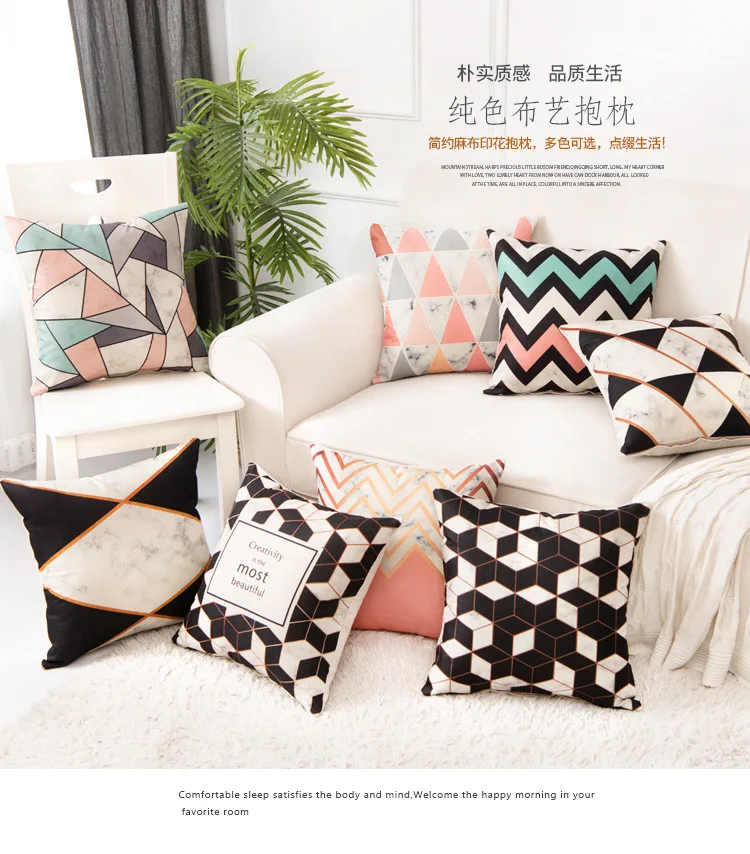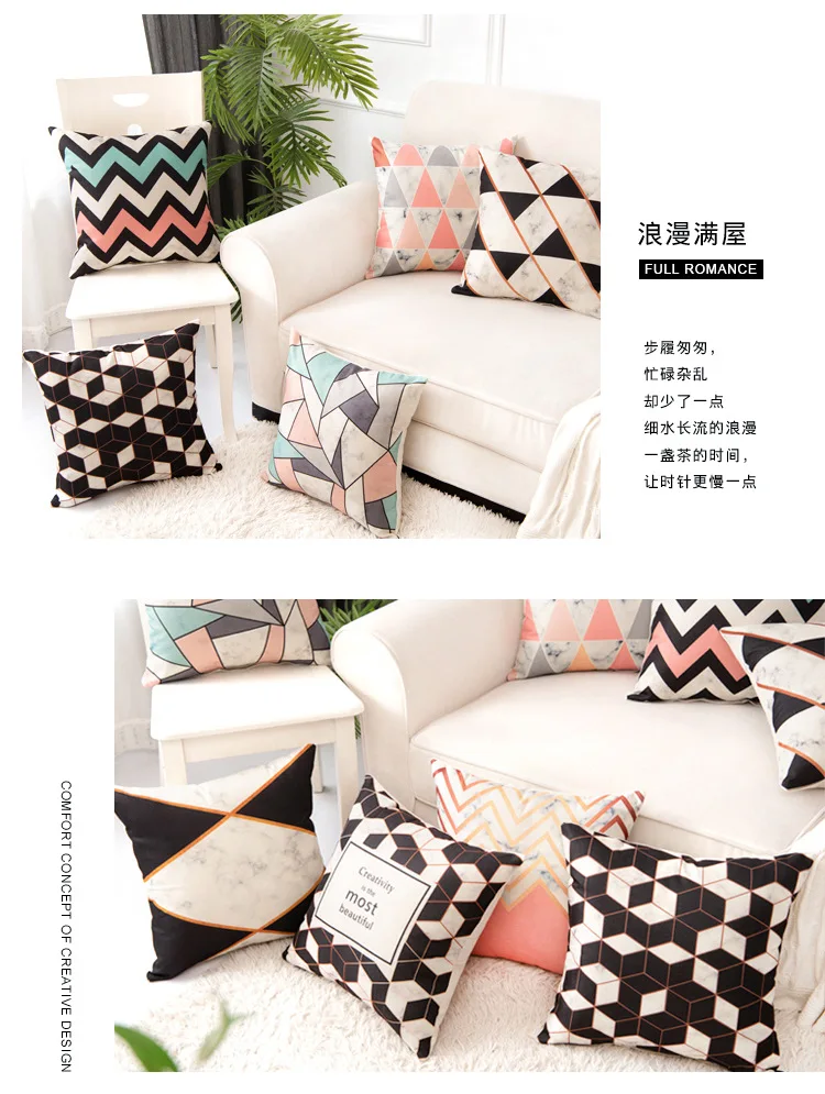 Особенности: геометрический дизайн, модный, мягкий, не выцветает, идеальное украшение для дивана и автомобиля.