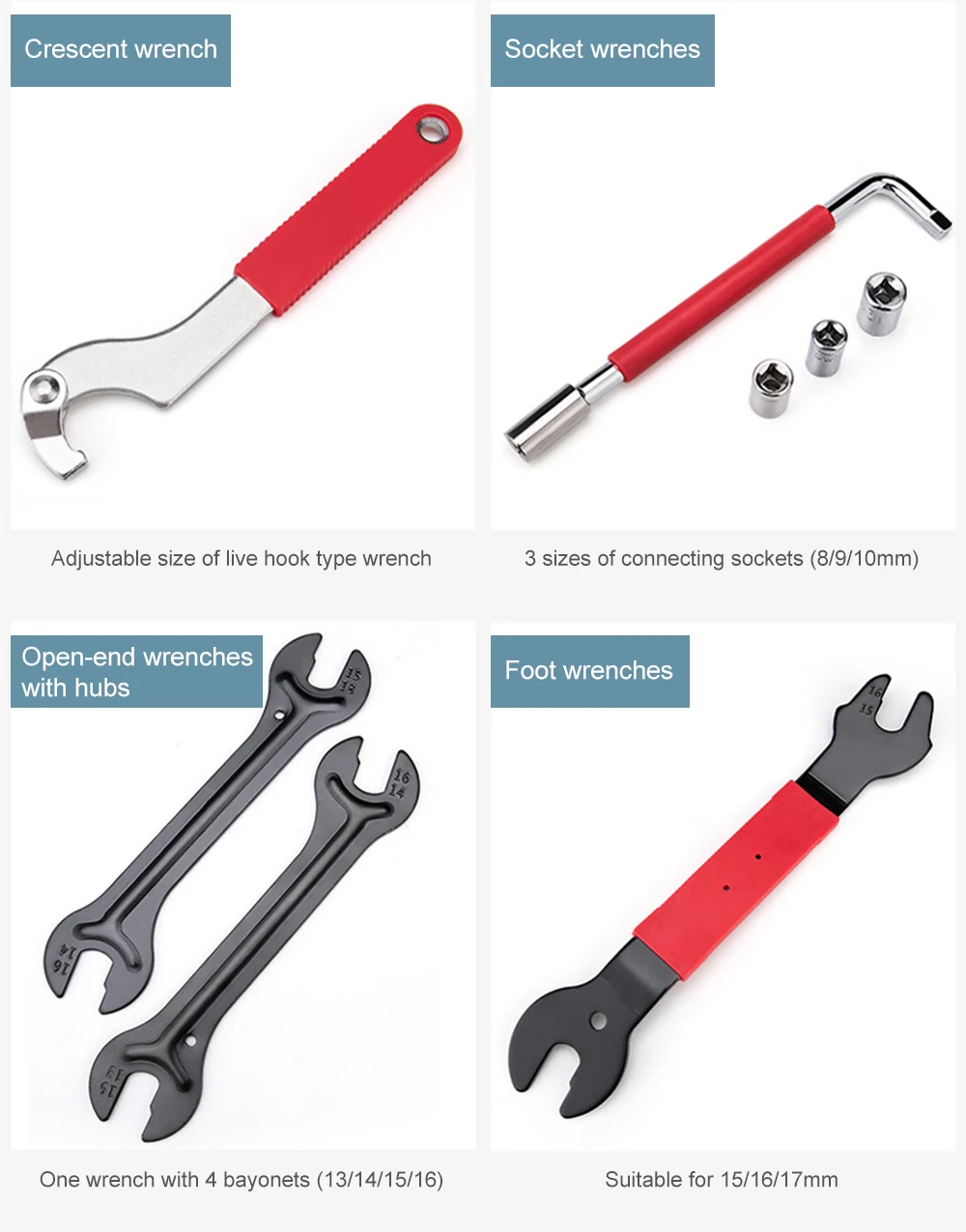 1x15 "16"-15 "17" педали открытый кольцевой ключ