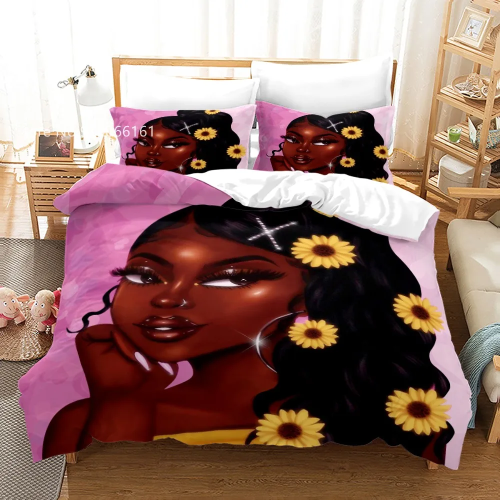 2/3 Pcs African Woman Duvet Cover Beautiful Tribal Girl Bedding Set Exotic Lady Bed Line For Kids Girls Bed Cover Set (No Sheets)