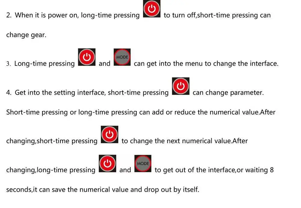 • Размер: Φ 60 мм• Отображение: миля, время, скорость, индикатор заряда батареи, напряжение,