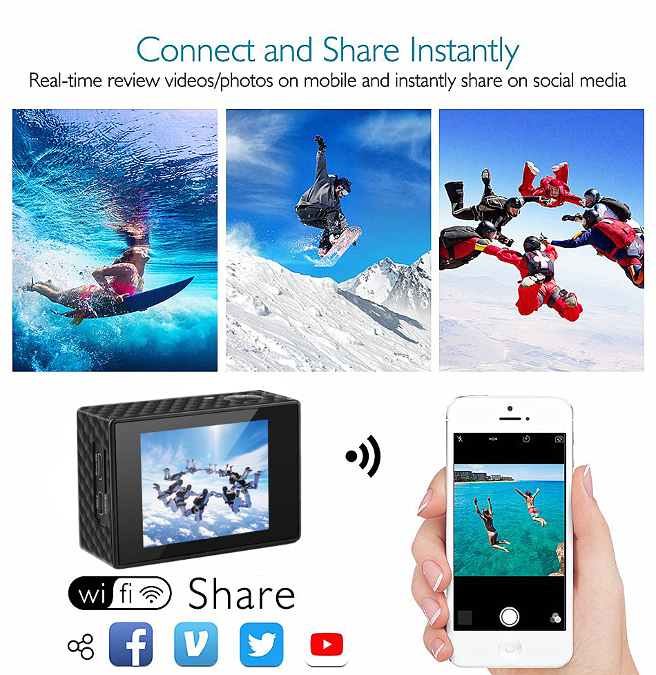 Экшн-камера EIS Anti-shake F99N/F99 Ultra HD 4K / 60fps WiFi 2,0 "170D подводный водонепроницаемый шлем Vedio go Sport pro