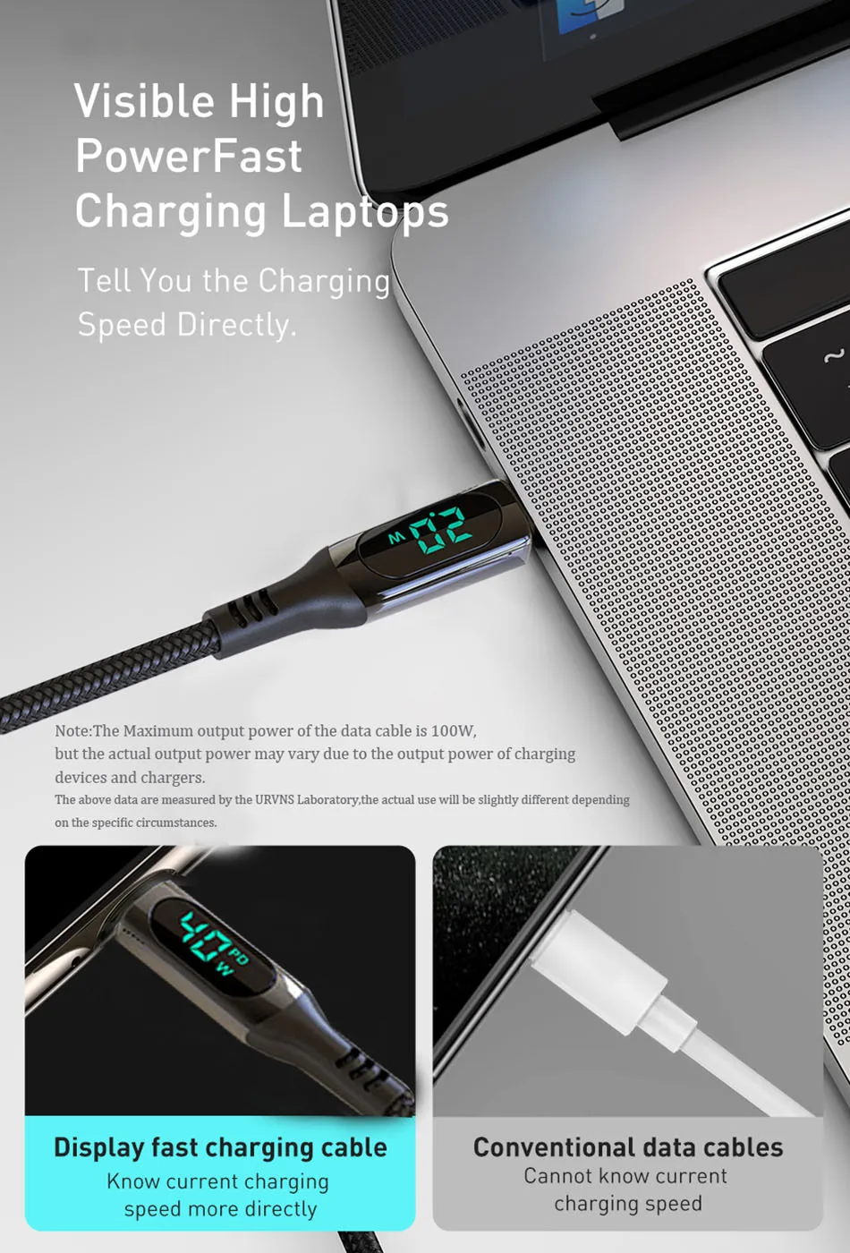 URVNS 5A 100 Вт Кабель Type C для Huawei Samsung Xiaomi светодиодный дисплей USB C кабель Type C для Type C быстрое зарядное устройство для MacBook Phone