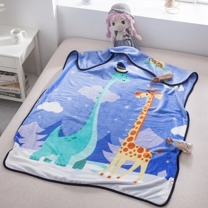 Однослойное фланелевое одеяло с рисунком жирафа, слона, детское теплое постельное белье с изображением животных, цветов, наколенники, домашний текстиль 100*140 см