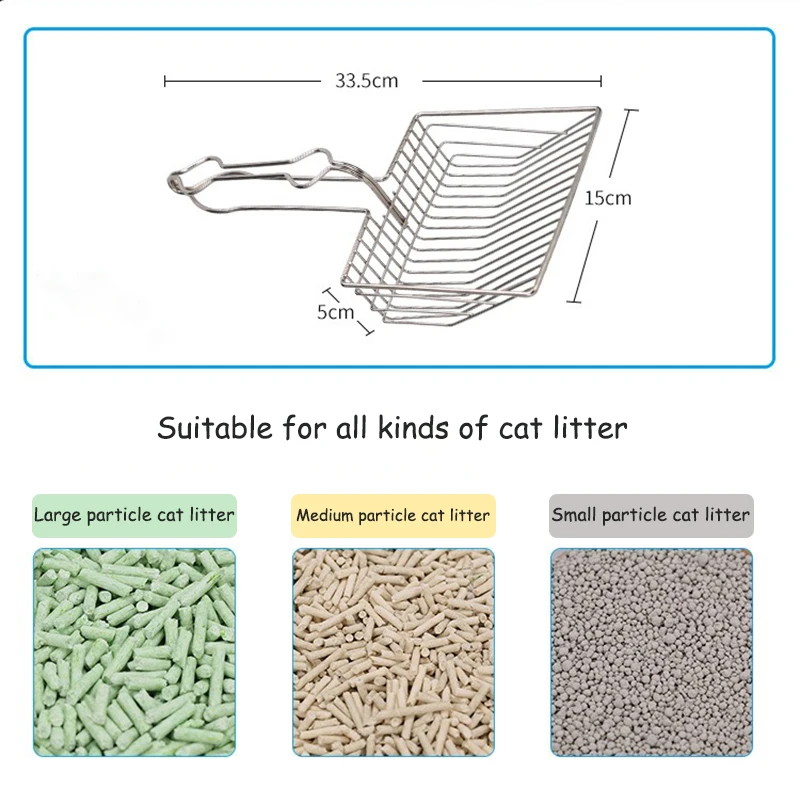 Конструкция ковша для кошачьего туалета с металлической проволокой из нержавеющей стали улавливает Твердые тела, а зазор 7 мм позволяет наполнителю быстро фильтровать за секунды, сохраняя более удобный наполнитель в коробке; он быстро просеивает и вызывает меньше вдыхания пыли. Идеально подходит для семьи с кошками.