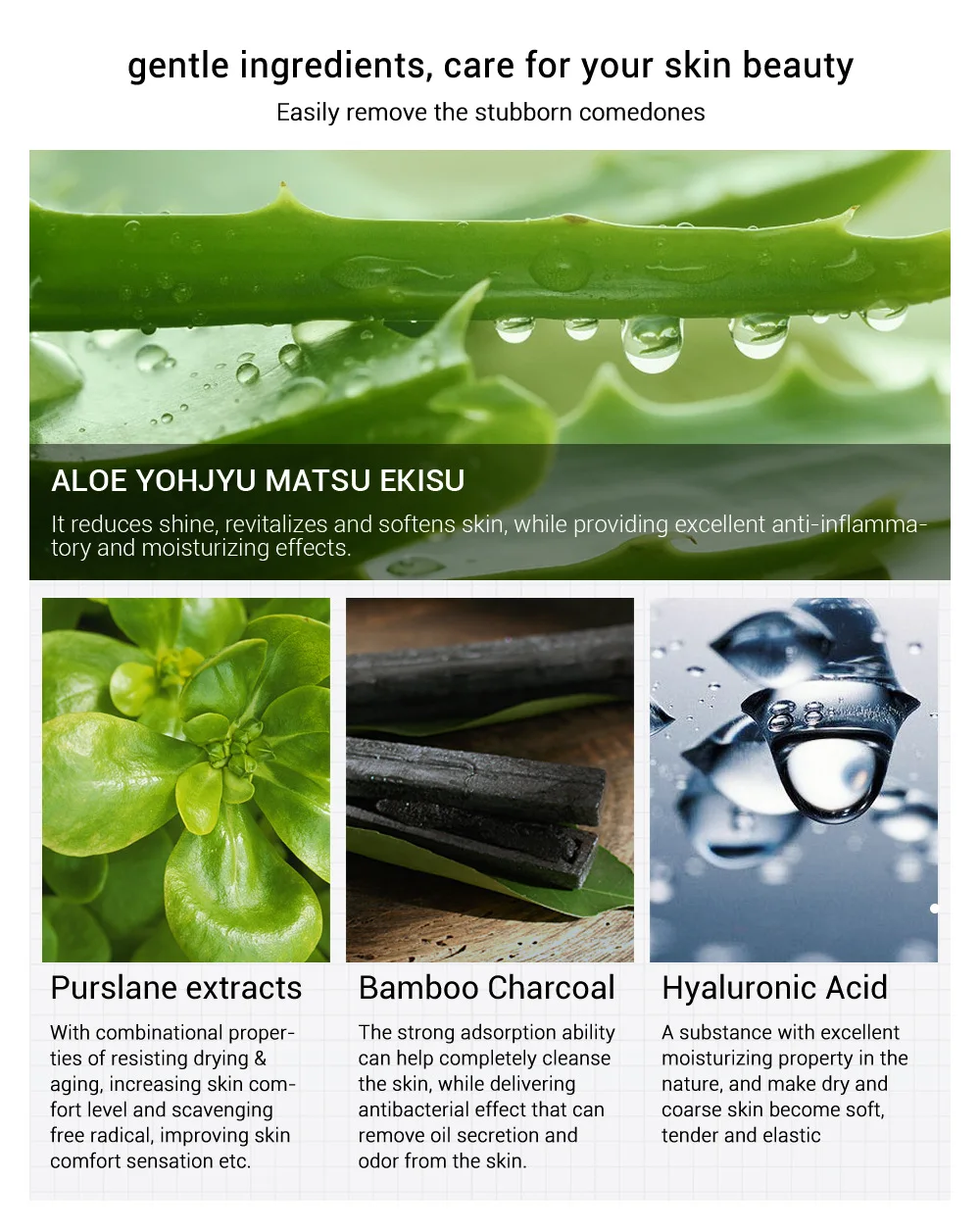 Ингредиент: алоэ, лактат натрия, экстракт олерацеи портулака, дикалий, глицирхизинат, уголь, гиалуроновая кислота