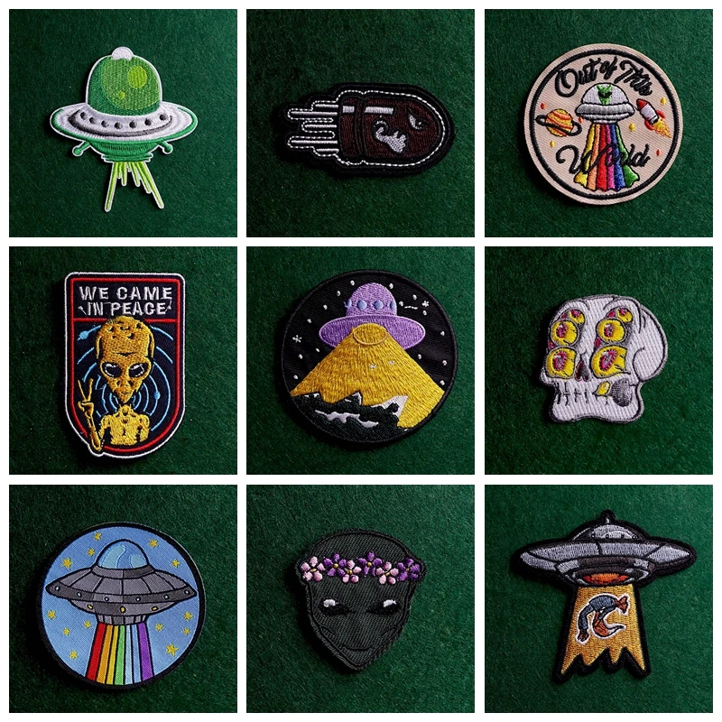 2 шт., пришитые Пластыри для одежды, нашивки UFO, нашивки в полоску, наклейки с вышивкой, пришитые на одежду, аппликация в виде вселенной, Декор