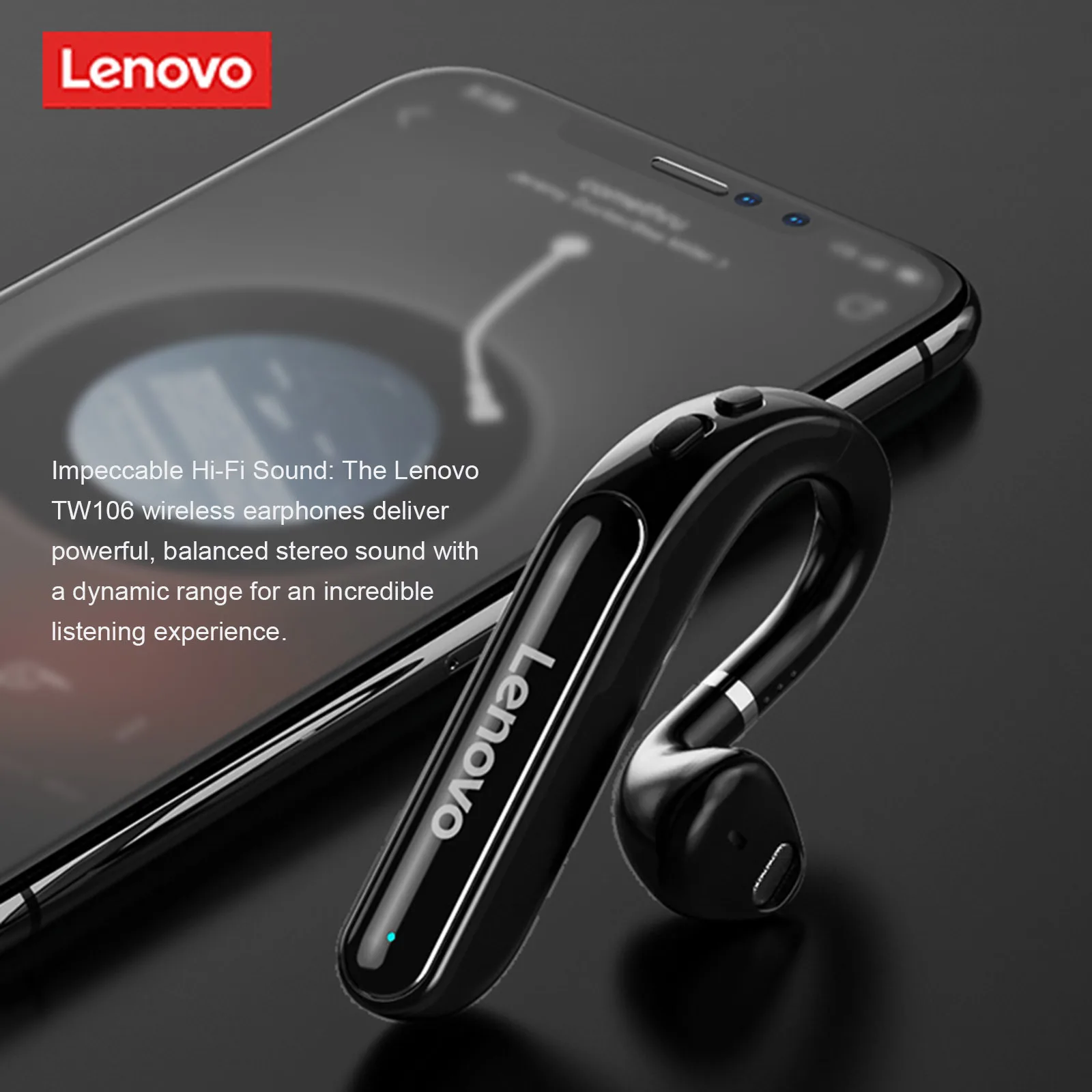 Безупречный hi-fi звук: беспроводные наушники Lenovo TW106 обеспечивают мощный, сбалансированный стереозвук с динамическим диапазоном для невероятного прослушивания музыки.