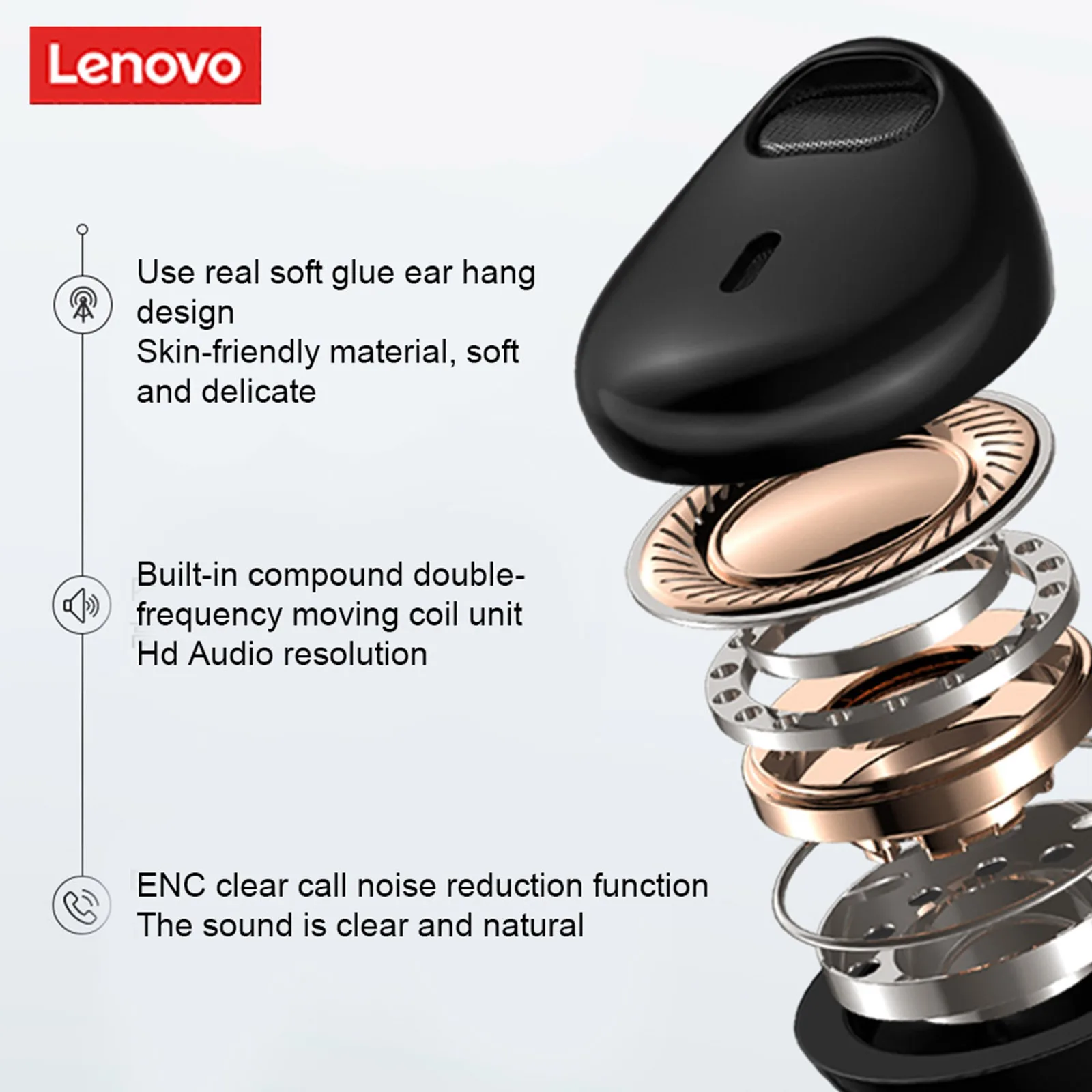 Снижение уровня шума: двойная система снижения уровня шума Lenovo может фильтровать шум внешней среды, уменьшая помехи во время вызова и глубоко уменьшая шум, делая вызов таким же чистым, как интервью.